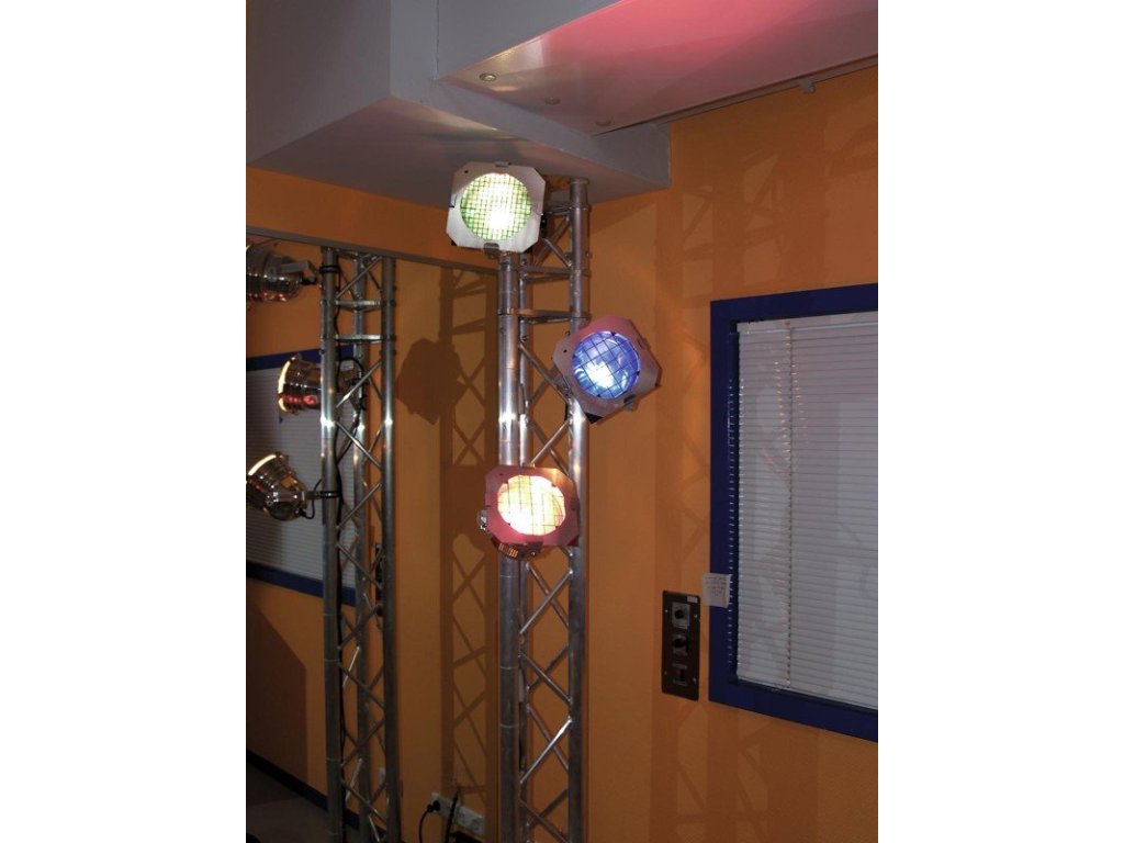 Wykonany z aluminium dla niskiej wagi. Możliwość stałej lub mobilnej instalacji. W zestawie ramka na filtry kolorowe. Możliwość instalacji lampy dla różnych stożków światła. Eleganckie wykonanie umożliwia zastosowanie w witrynach sklepowych.