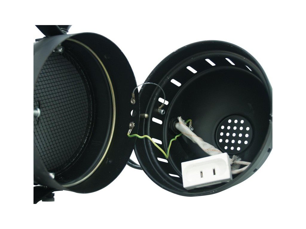 PAR-56 profi spot z kablem i wtyczką, czarny. Solidna aluminiowa konstrukcja. Mocny aluminiowy wspornik z otworem do mocowania linki zabezpieczającej. Dostarczany z ramką na filtry kolorowe. Żaroodporna śruba mocująca. 4 zaciski klipsowe ze sprężynowym zamkiem dla wygodnego otwierania ramki na filtr kolorowy. Kratka ochronna (ochrona przed rozpryskiem) jest zintegrowana z konstrukcją spotu. Mocna sprężyna naciągowa do bezpiecznego zamknięcia i szybkiego otwarcia tylnej pokrywy. Kratka ochronna tylnej pokrywy zgodna z dyrektywami CE. Silikonowy czarny kabel, solidne uziemienie w konstrukcji, ceramiczna oprawka, wtyczka bezpieczeństwa. Nadaje się do prostej instalacji naszych reflektorów Raylight z odpowiednim złączem (GX 16). Dostępny w wersji aluminiowej lub czarnej.
