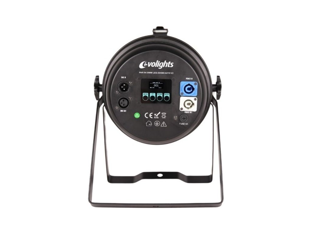 Oświetlenie Evolights Par 64 200W LED Zoom Auto oferuje aż 6 trybów pracy: automatyczny, DMX, manualny, dźwiękowy, master/slave i statyczny kolor. Urządzenie jest wyposażone w panel sterowania z wyświetlaczem OLED i czterema dotykowymi przyciskami do łatwej konfiguracji i obsługi. Reflektor sceniczny może być sterowany za pomocą protokołu DMX. Złącza DMX (3-pinowe XLR, in/out) i złącza zasilania (powercon in/out) dodatkowo zapewniają bezproblemową integrację z innym sprzętem scenicznym.