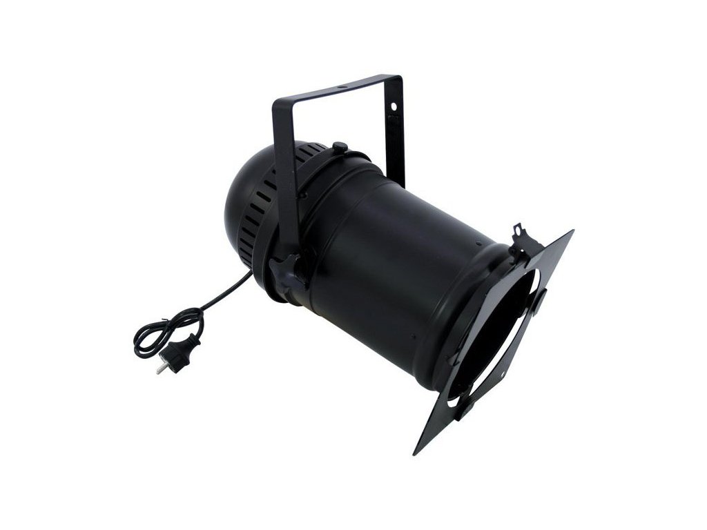 Reflektor PAR-64 profi z kablem i wtyczką, czarny. Solidna aluminiowa konstrukcja. Mocny aluminiowy wspornik z otworem na linkę zabezpieczającą. Dostarczany z ramką na filtr kolorowy. Żaroodporna śruba mocująca z zabezpieczeniem przed przekręceniem. 4 zaciski klipsowe z motylkowymi zamkami dla wygodnego otwierania ramki na filtr kolorowy. Mocna sprężyna naciągowa dla wygodnego otwierania tylnej pokrywy. Kratka ochronna tylnej pokrywy spełnia wymogi dyrektyw CE. Proste podłączenie za pomocą wtyczki bezpieczeństwa i kabla silikonowego (czarny). Stabilne uziemienie, prosto przymocowane ceramiczne gniazdo. Dostępny w kolorze czarnym i alu.