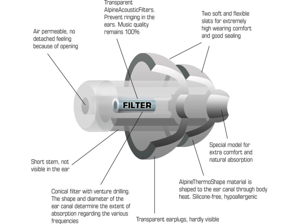 Alpine PartyPlug to idealna ochrona słuchu na imprezy, koncerty, dyskoteki itp. Są bardzo dyskretne (ich krótka nóżka nie wystaje z uszu) i doskonale funkcjonalne. Specjalnie zaprojektowany filtr akustyczny tłumi głośność muzyki do odpowiedniego - a przede wszystkim bezpiecznego poziomu - a jednocześnie umożliwia bezproblemową konwersację.