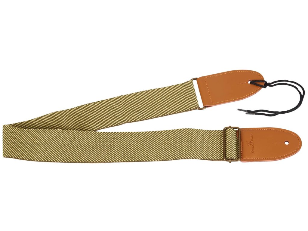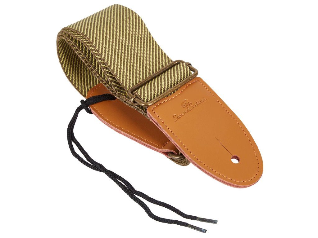 Paski od włoskiej firmy Soundsation zachwycają wizualnym wykonaniem i wysokiej jakości materiałami zarówno początkujących, jak i zaawansowanych graczy, i nadają się do szerokiej gamy instrumentów. Ten model wykonany jest z pięciocentymetrowej szerokości tweedu, który jest bardzo wygodny i wytrzymały. Uzupełniają go mocne zakończenia z prawdziwej skóry i mosiężne okucia, dzięki którym pasek oferuje obecnie tak popularną estetykę vintage. Oczywistością jest możliwość regulacji długości do 150 centymetrów.