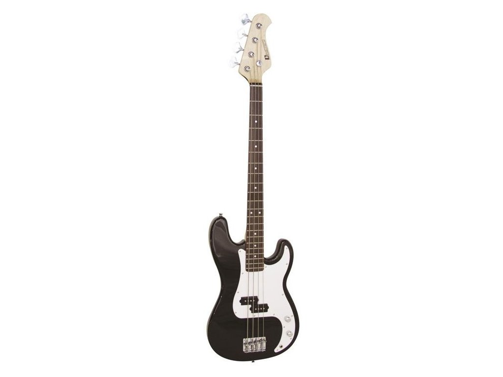 Gitara basowa typu Precision. Korpus lipowy, gryf klonowy, podstrunnica palisandrowa, 21 progów, przetworniki 1 x dzielone Single Coils, sterowanie 1 x Volume, 1 x Tone, mostek typu JB, otwarta mechanika, chromowany osprzęt. Kolor czarny.