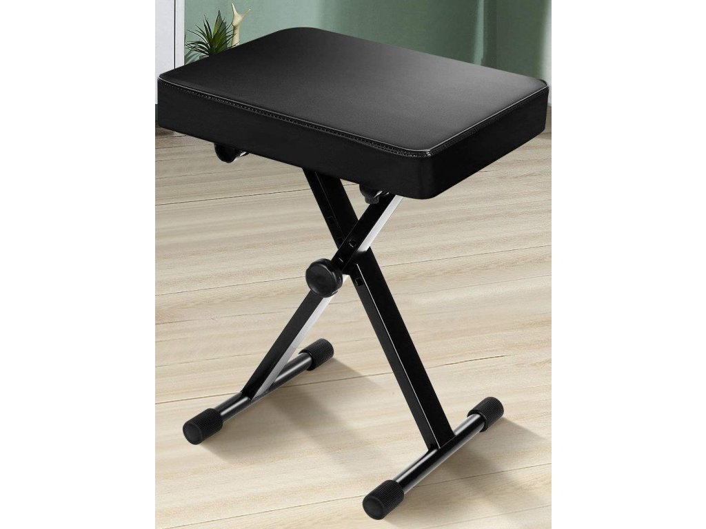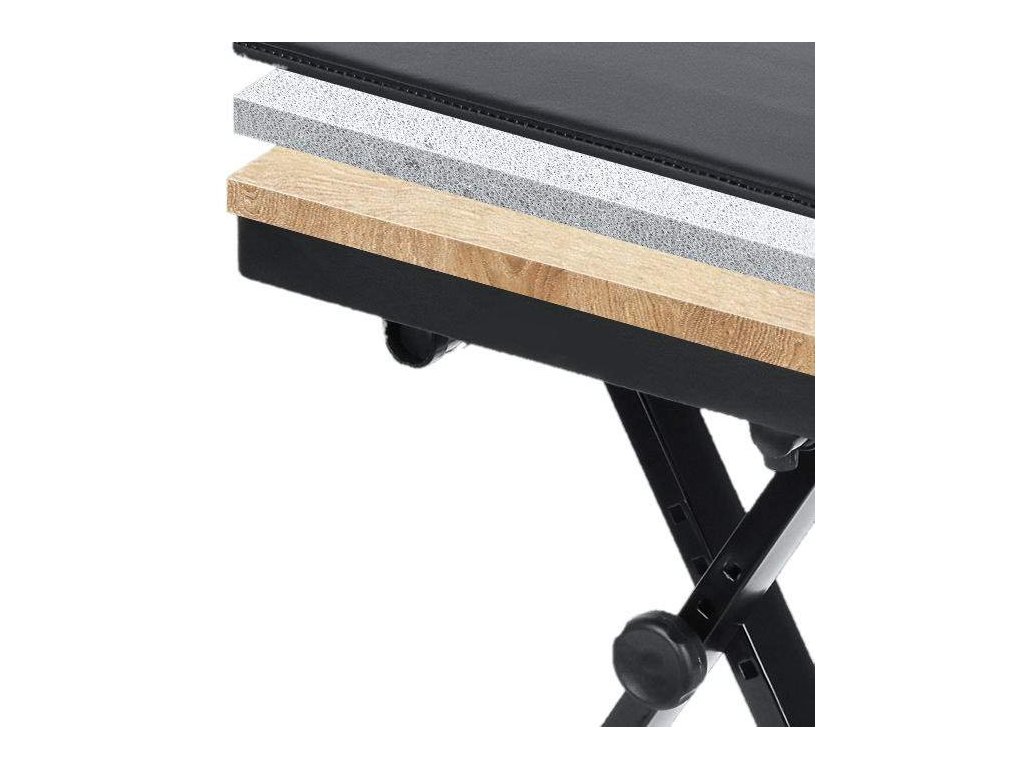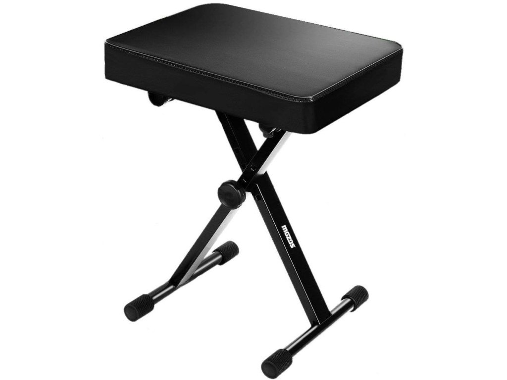 Wygodny stołek fortepianowy marki Mozos z siedziskiem ze skóry ekologicznej z pianką memory, czterema poziomami wysokości i składaną konstrukcją ułatwiającą transport. Stołek wykonany jest z połączenia stali i skóry ekologicznej, dzięki czemu idealnie pasuje do każdej sali lekcyjnej z fortepianem lub do nowocześnie urządzonego domu.