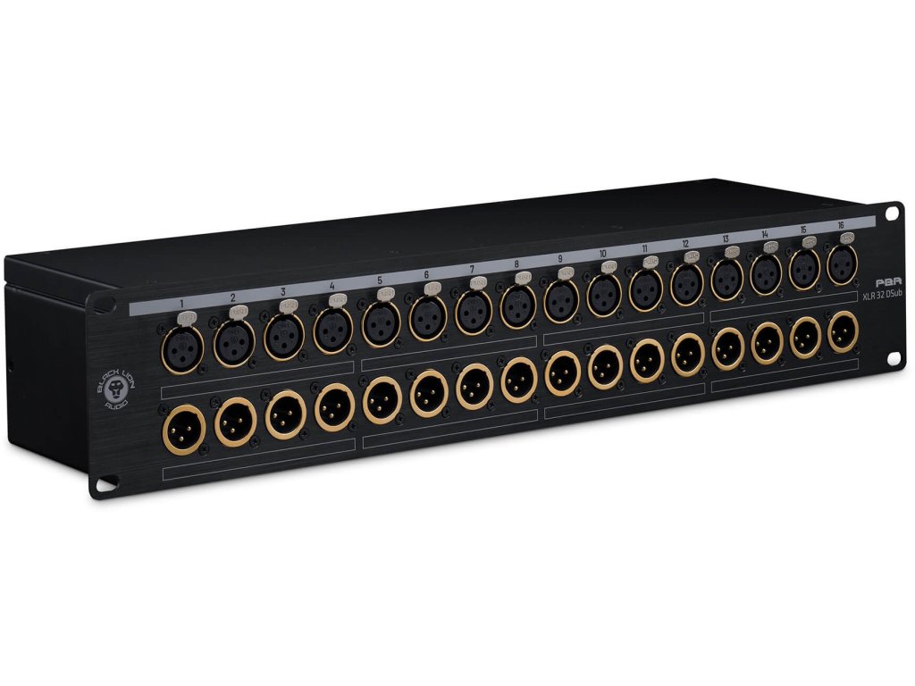 Patchbay przeznaczony do łączenia urządzeń i instalacji kablowych za pomocą złączy XLR żeńskich dla wejścia i XLR męskich dla wyjścia. Do stałego podłączenia urządzeń służą 4 zintegrowane złącza DSub.