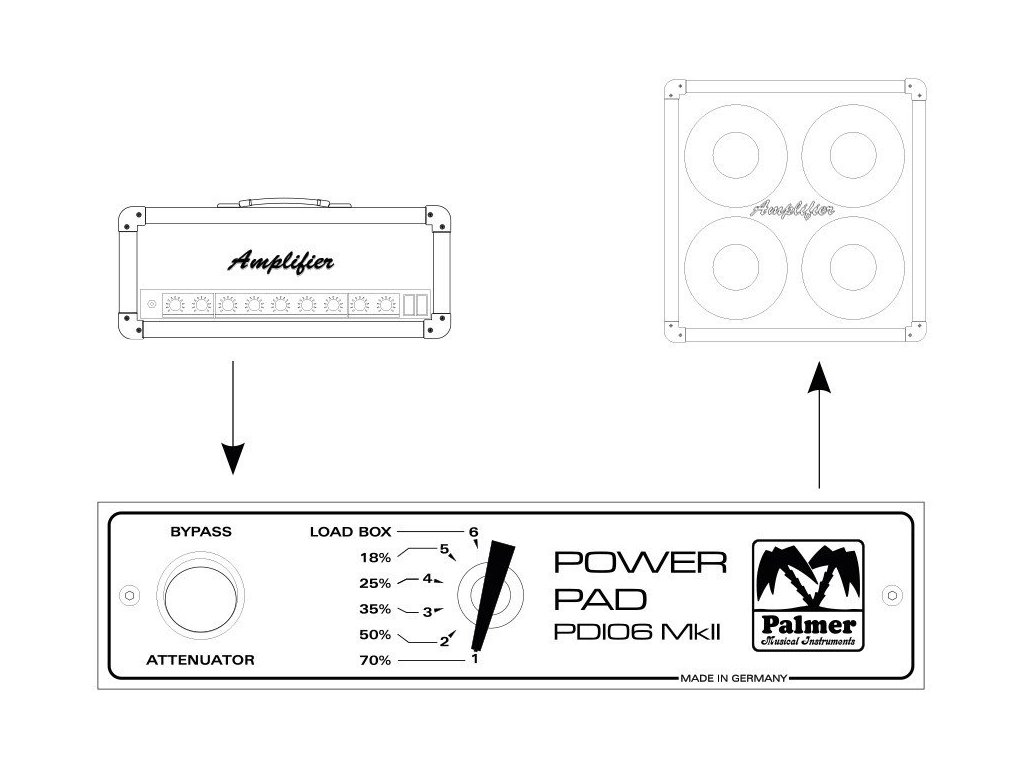 PDI06 to tłumik mocy przeznaczony do użytku na żywo. Urządzenie podłącza się między wyjście wzmacniacza a kolumnę głośnikową. Umożliwia wykorzystanie ulubionych zniekształceń wzmacniaczy mocy, ale związaną z tym wysoką głośność można zmniejszyć. Głośność można zmniejszyć ze 100% do 18% w 6 krokach, aby dostosować ją do warunków sceny i sali prób. Kolejny poziom całkowicie wycisza głośnik, wtedy PDI06 działa jako LOAD BOX i pochłania całą moc dostarczaną przez wzmacniacz.
