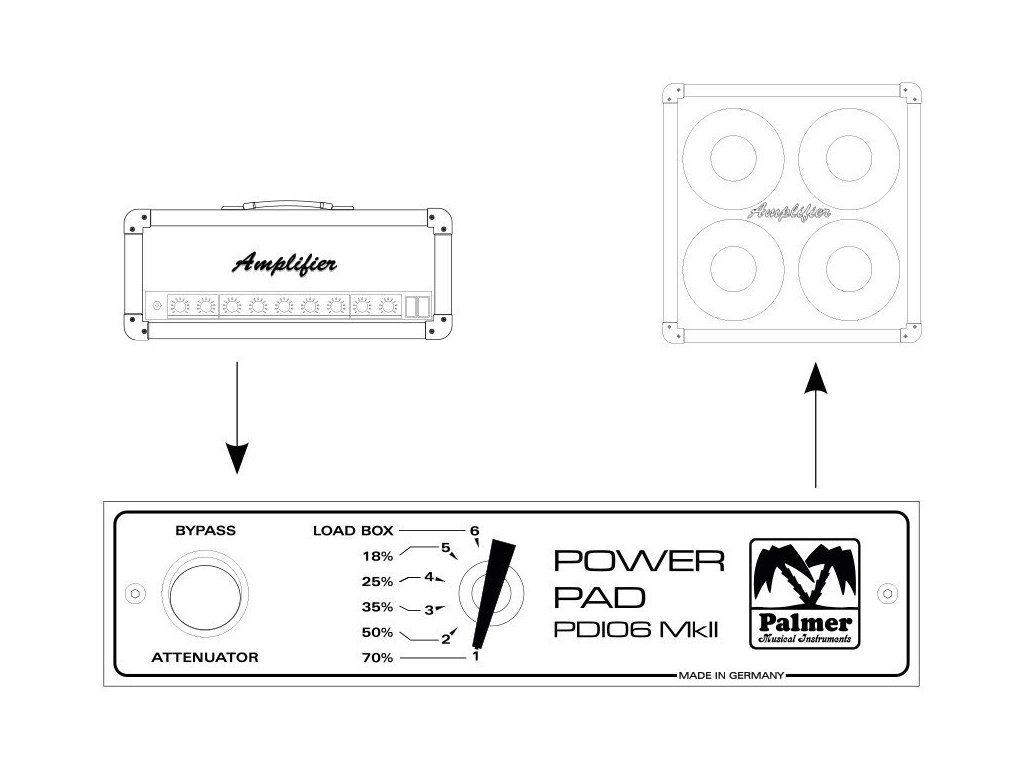 PDI06 to element tłumiący do zastosowań na żywo. Urządzenie podłącza się między wyjście wzmacniacza a kolumnę głośnikową. Umożliwia wykorzystanie ulubionych zniekształceń wzmacniaczy mocy, ale związaną z tym wysoką głośność można zmniejszyć. Głośność można zmniejszyć ze 100% do 18% w 6 krokach, aby dostosować ją do warunków sceny i sali prób. Kolejny poziom całkowicie wycisza głośnik, wtedy PDI06 działa jako LOAD BOX i pochłania całą moc dostarczaną przez wzmacniacz.
