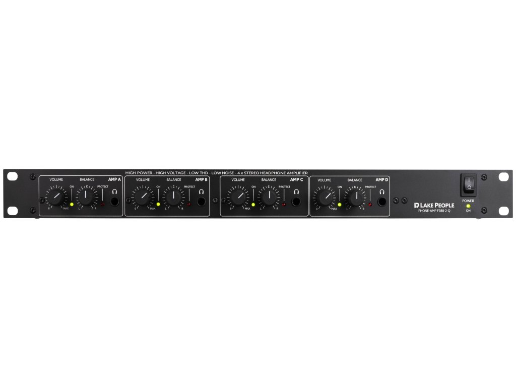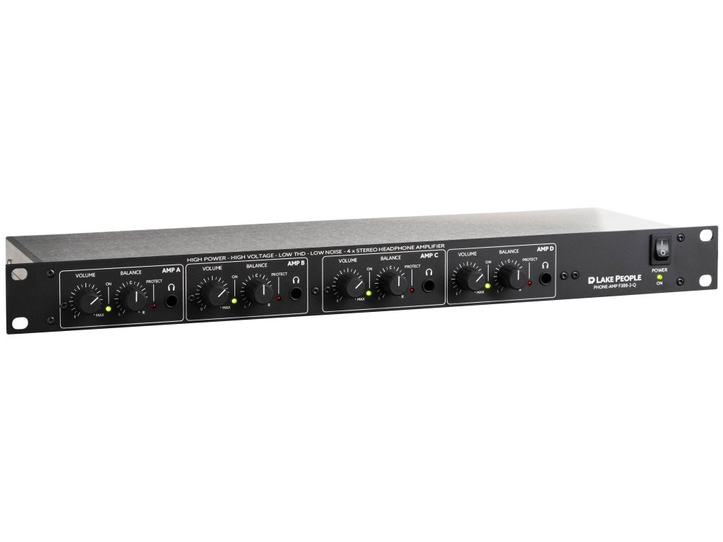 F388-2-D to wydajny i wytrzymały wzmacniacz słuchawkowy do racka 19" z symetrycznymi wejściami na tylnym panelu. Urządzenie to zawiera dwa wzmacniacze stereo, z których każdy jest wyposażony w regulację głośności i balansu. Wzmocnienie można regulować wewnętrznie, aby osiągnąć -12 / - 6 / 0 / +6 / +12 dB. Wzmacniacze mają na wyjściu niską impedancję, dzięki czemu mogą wysterować słuchawki niskoimpedancyjne bez żadnych zniekształceń. Dzięki wyjątkowo wysokiemu wewnętrznemu napięciu roboczemu, również w słuchawkach wysokoimpedancyjnych utrzymywany jest więcej niż wystarczający poziom głośności.