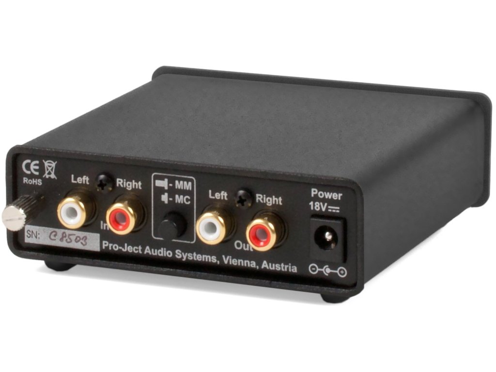 Przełącznik dla gramofonu z wkładką MM lub MC, precyzyjna korekcja RIAA, minimalistyczne wymiary, pozłacane złącza RCA.