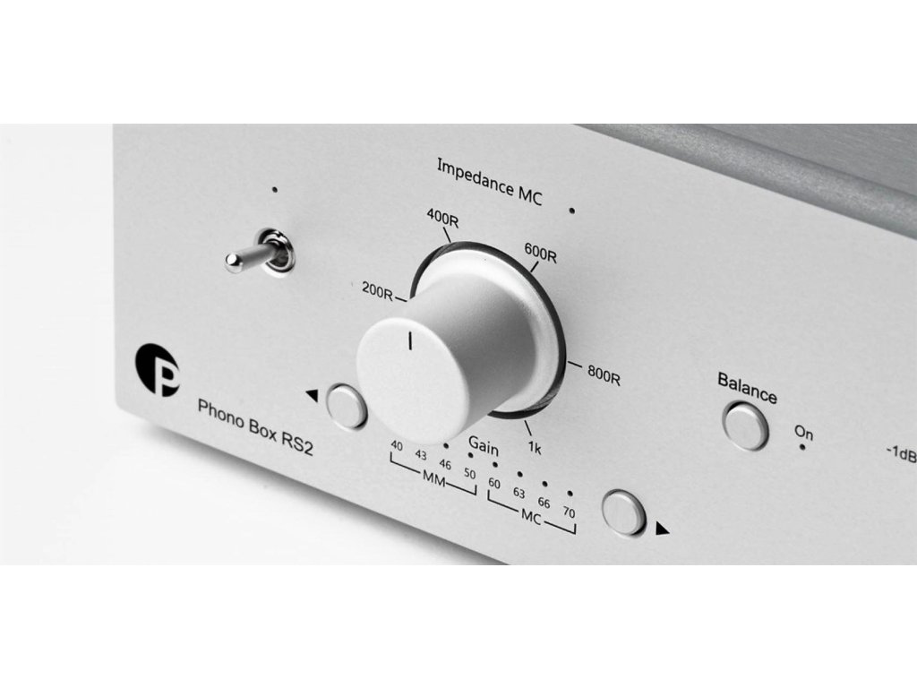 Wkładki naturalnie cierpią z powodu niewielkiej nierównowagi między lewym i prawym kanałem. W przedwzmacniaczu Phono Box RS2 zintegrowano nową funkcję, która jest bardzo rzadka w tej kategorii cenowej. Potencjometr umożliwia ustawienie dokładnego środka sceny dźwiękowej w zakresie 2 dB w lewo lub w prawo. Tę funkcję można wyłączyć, aby ścieżka sygnału była jak najkrótsza w przypadkach, gdy jej użycie nie jest konieczne. Praktycznie nie istnieje wkładka MM lub MC, dla której Phono Box RS2 nie znalazłby idealnych ustawień.