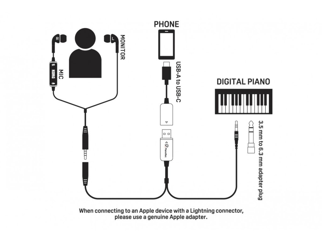 Nie potrzebujesz żadnych dodatkowych urządzeń* Wystarczy podłączyć PianoRec do pianina cyfrowego i smartfona, aby rozpocząć nagrywanie. Skomplikowane okablowanie lub konfiguracja to już przeszłość.