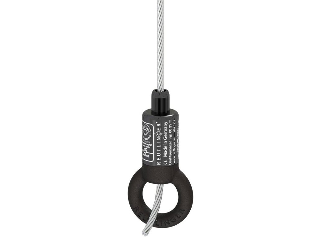 Uchwyt liny z centralnym wyjściem kablowym, zintegrowanym pierścieniem, nakrętką zabezpieczającą i mechanizmem chwytającym z sześcioma kulkami. Certyfikat TÜV, posiada również certyfikat badania do użytku w zakresie obowiązywania rozporządzenia DGUV 17 (BGV C1).