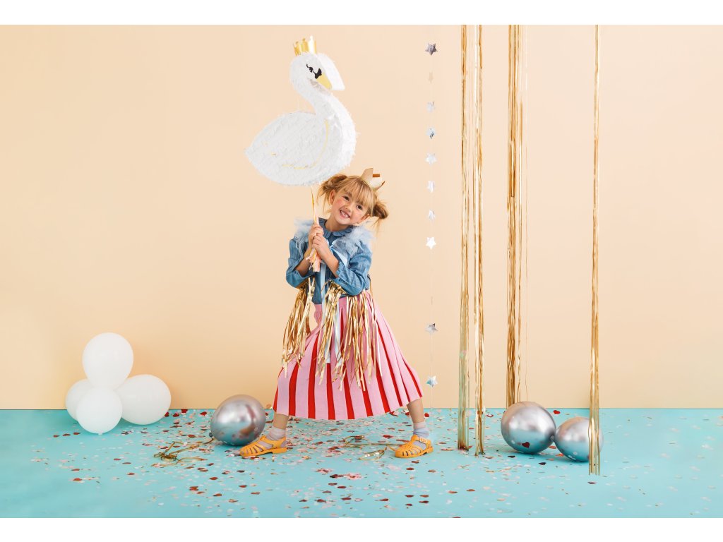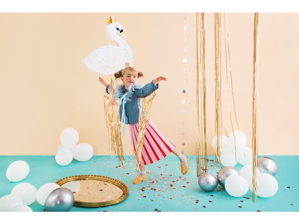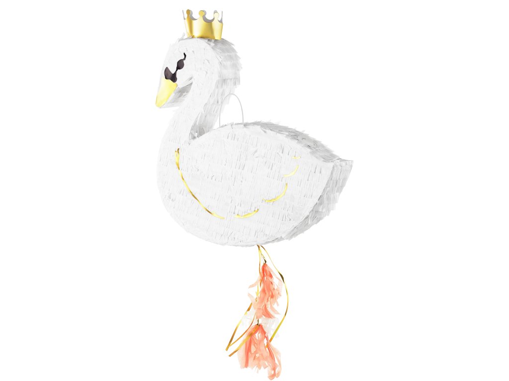 Pinata w kształcie łabędzia w kolorze białym, do napełniania smakołykami, rozmiar ok. 43,5 x 49,5 x 9 cm.Parametry dodatkowe