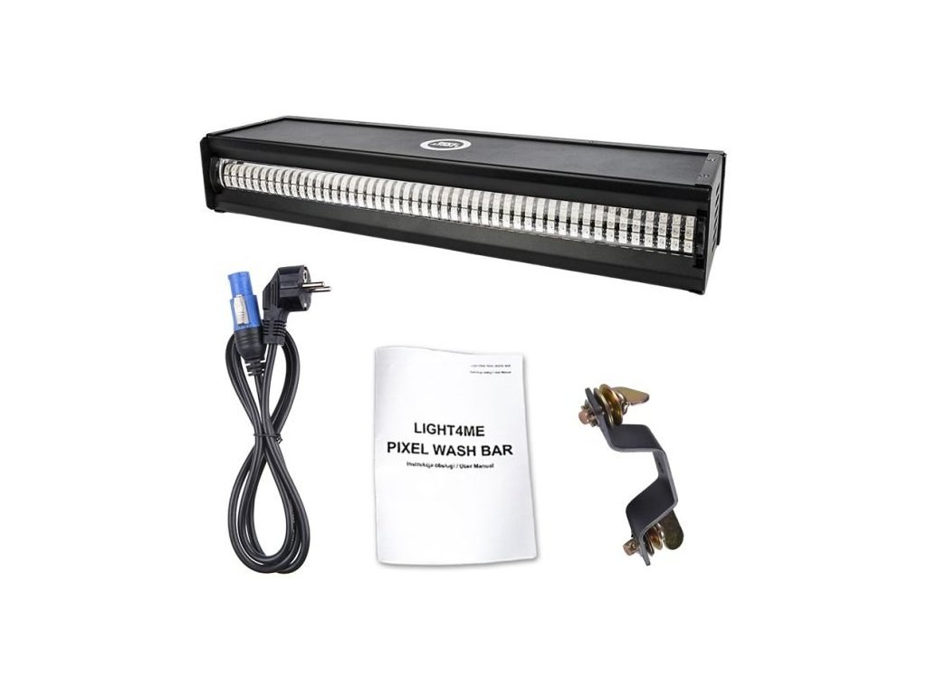 Light4Me Pixel Wash Bar to listwa oświetleniowa przeznaczona do profesjonalnych zastosowań scenicznych. Listwa LED jest wyposażona w 144 wydajne diody LED o mocy 0,6 W, pracujące w palecie kolorów RGB, dzięki czemu oferuje możliwość tworzenia bardzo kreatywnego oświetlenia. Uchwyt montażowy umożliwia pracę w pozycji podwieszonej. Listwa ma szerokie zastosowanie w oświetleniu scenicznym i dekoracji świetlnej. Idealnie nadaje się na parkiety taneczne, imprezy DJ-skie i dyskoteki.