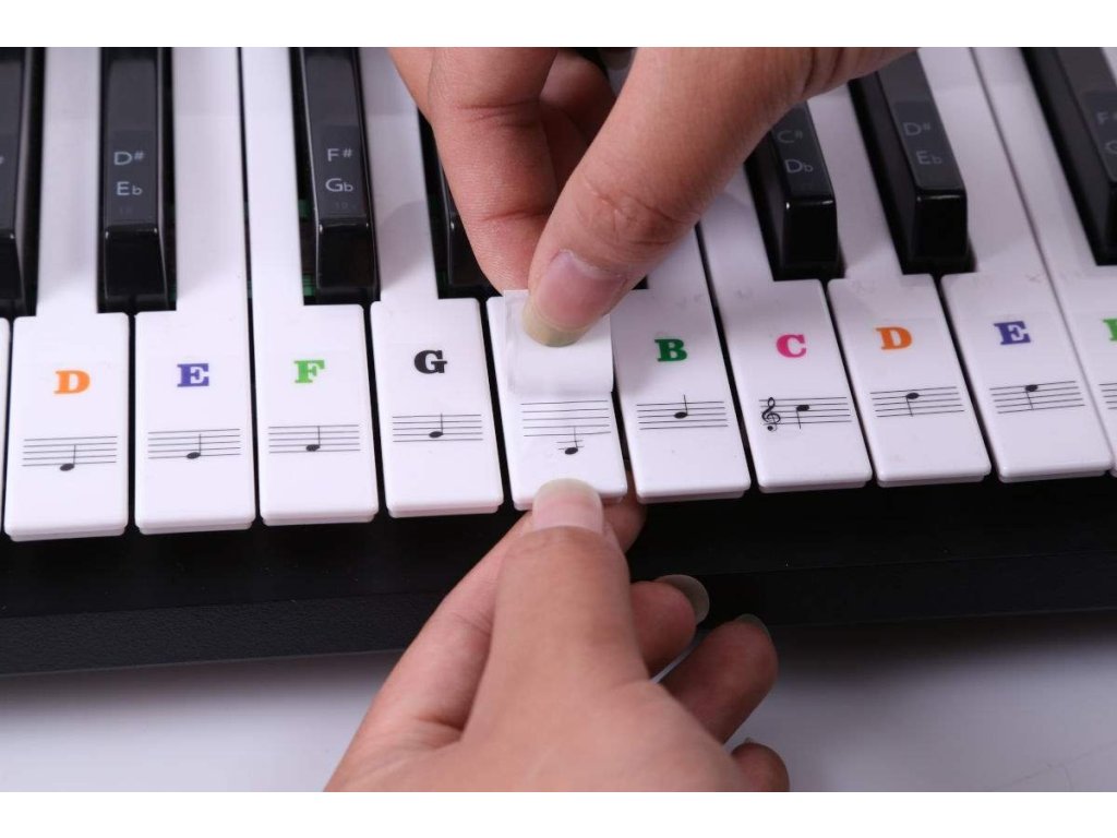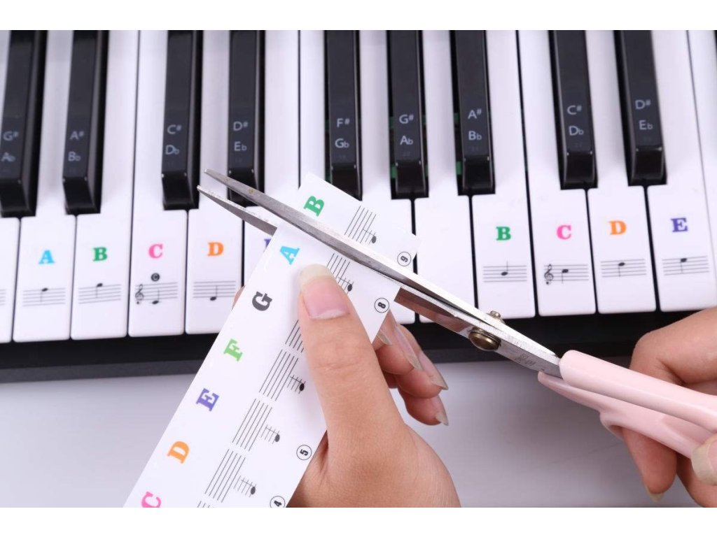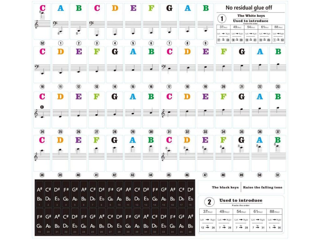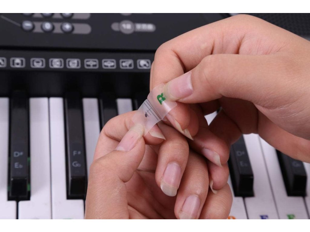 Naklejki z tonami odpowiednie dla początkujących pianistów, którzy dopiero poznają piękno swojego instrumentu, w tym teorię i naukę o muzyce. Opakowanie zawiera 88 naklejek zawierających kolorystycznie rozróżnione nazwy tonów wraz z usadzeniem w pięciolinii. Naklejki są wykonane z wytrzymałego i bardzo transparentnego materiału PVC, dlatego wytrzymają nawet kilka lat grania, a nauka będzie dla ciebie czystą przyjemnością.
