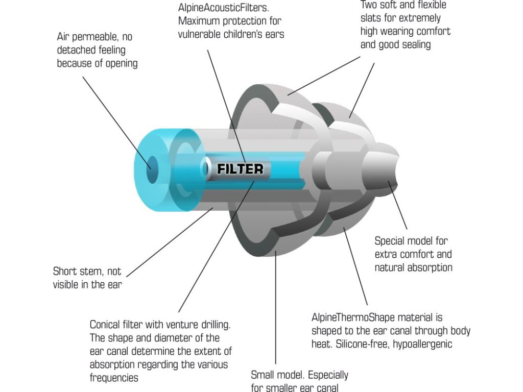 Uszy dzieci są bardzo wrażliwe, do tego stopnia, że aż jedno na ośmioro dzieci traci słuch trwale z powodu nadmiernego hałasu. Chroń uszy dzieci tak samo, jak chronisz swoje. Alpine Pluggies kids ochronią uszy przed hałasem i przedostawaniem się wody. Dzięki specjalnej konstrukcji redukują hałas nawet o 30 dB, ale nie tłumią rozmów – dzieci mogą je więc nosić nawet w szkole!