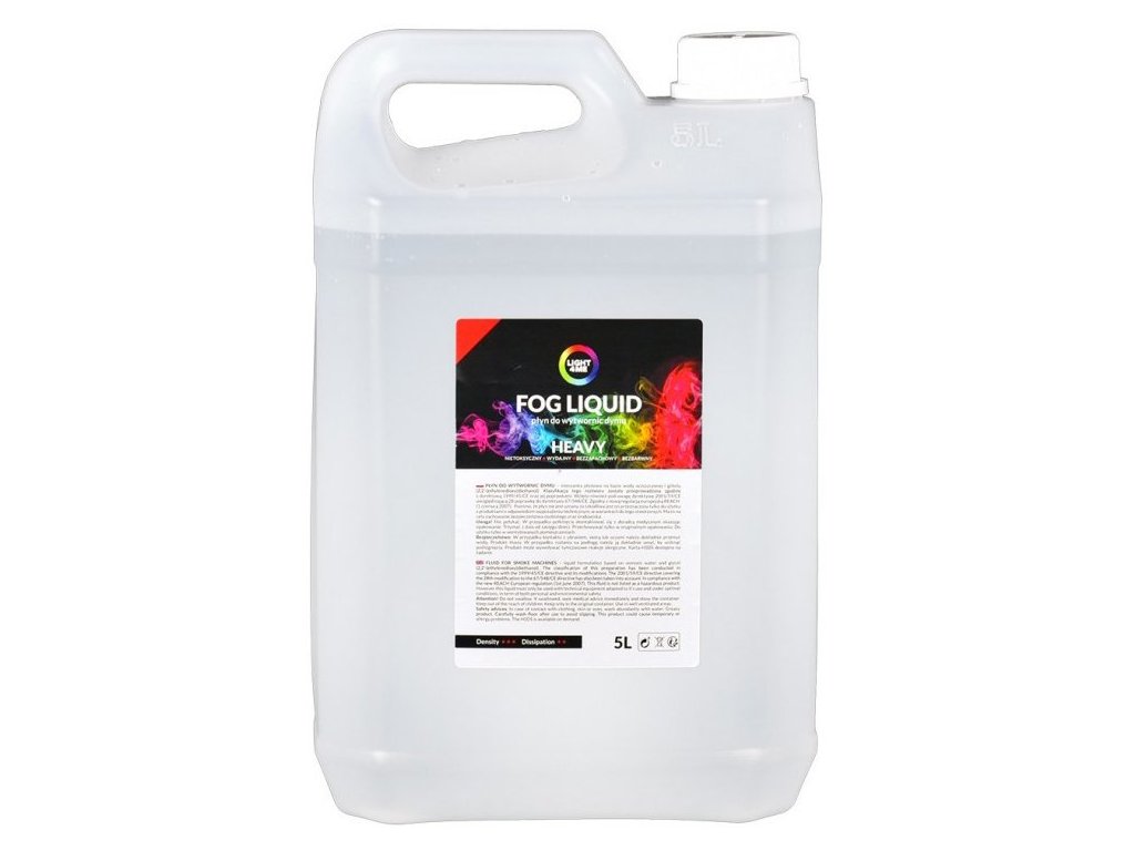 LIGHT4ME FOG LIQUID HEAVY - profesjonalny płyn do wytwornic dymu (płyn do wytwornic mgły) na bazie oczyszczonej wody i glikolu, przeznaczony do tworzenia efektów specjalnych. Roztwór jest bezwonny, bezbarwny i nietoksyczny, dzięki czemu jest bezpieczny w użyciu. Charakteryzuje się wysoką wydajnością i doskonałym efektem zamglenia. Emitowana para jest bardzo gęsta, utrzymuje się stosunkowo długo i wyraźnie pokazuje promienie reflektorów. Płyn Light4Me typu HEAVY idealnie sprawdza się jako materiał eksploatacyjny do różnego rodzaju wytwornic dymu i phaserów. Może być stosowany w technice scenicznej, podczas koncertów klubowych, dyskotek i pubów, a także w salach weselnych i różnego rodzaju imprezach. Świetnie sprawdza się również na planach filmowych, tworząc unikalną scenografię i doskonałe efekty atmosferyczne.