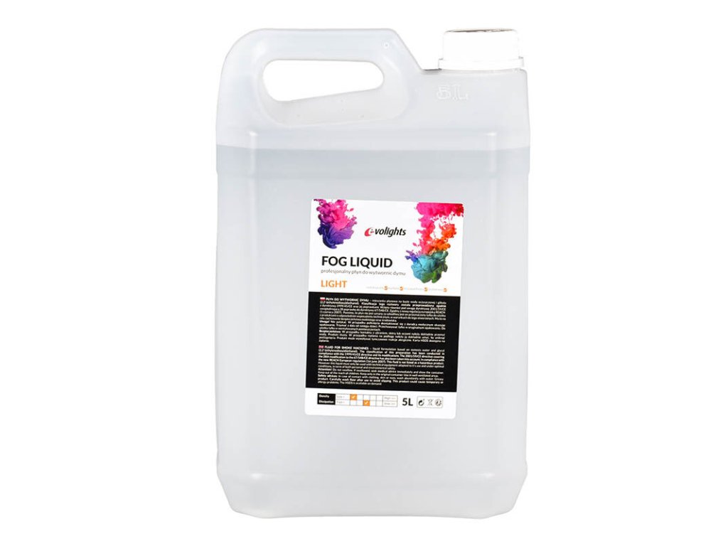 Profesjonalny <\/span>płyn do wytwornic dymu (płyn do wytwornic mgły) wyprodukowany na bazie oczyszczonej wody i glikolu, przeznaczony do tworzenia specjalnych efektów scenicznych. Roztwór jest bezzapachowy, bezbarwny i nietoksyczny, a tym samym bezpieczny w użyciu. Charakteryzuje się wysoką wydajnością i doskonałym efektem lekkiego zamglenia. Wydzielana para jest przezroczysta i utrzymuje się stosunkowo długo, delikatnie uwidaczniając promienie świateł scenicznych reflektorów. Lekki płyn do wytwornic dymu doskonale sprawdzi się jako materiał eksploatacyjny do różnego rodzaju wytwornic dymu i fazerów. Może być stosowany w technice scenicznej, podczas kameralnych koncertów klubowych, w dyskotekach i barach, a także na salach weselnych i różnego rodzaju imprezach.