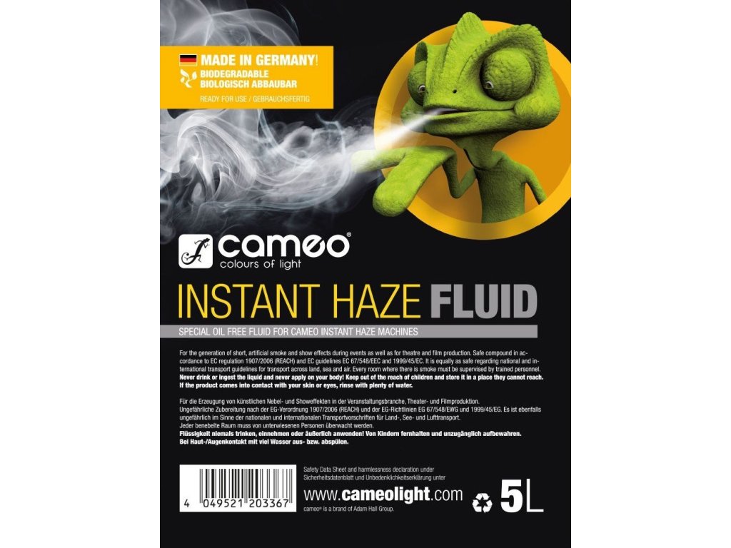 Jakość Cameo Instant Haze-Fluid jest stale monitorowana podczas produkcji w Niemczech. Jest biodegradowalny i całkowicie nieszkodliwy.