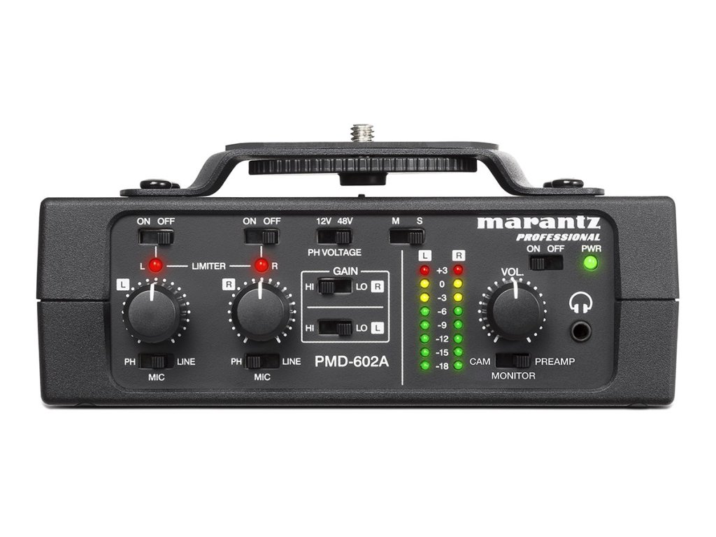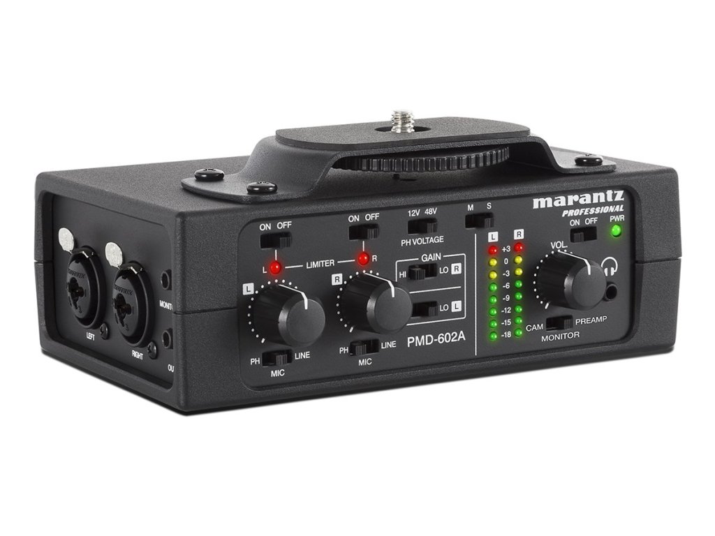 Dwukanałowy interfejs audio PMD-602A umożliwia korzystanie z mikrofonów i źródeł sygnału liniowego z aparatami DSLR lub sprzętem rejestrującym w terenie dzięki zasilaniu bateryjnemu.