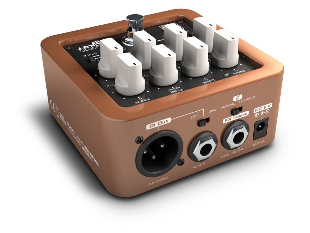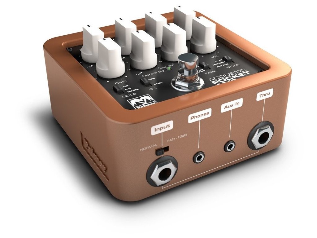 Dzięki efektywnym możliwościom kontroli tonu dla gitar akustycznych i basów, Acoustic Pocket Amp jest wszechstronnym narzędziem do ćwiczeń, nagrywania i grania. Jest równie odpowiedni do przetworników piezoelektrycznych i magnetycznych, a 3-pasmowy korektor z półparametryczną regulacją środka jest specjalnie zaprojektowany do instrumentów akustycznych. Limiter wejściowy zapobiega zniekształceniom spowodowanym dynamicznymi skokami, a 5-stopniowy filtr notch eliminuje sprzężenia zwrotne spowodowane częstotliwościami rezonansowymi. Ponadto, jako podstawowe ustawienie można wybrać współczesną, nowoczesną charakterystykę lub ciepłe brzmienie instrumentów historycznych, a regulacja przenikania umożliwia płynne mieszanie oryginalnych i przetworzonych sygnałów.