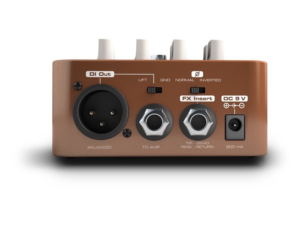 Do Acoustic Pocket Amp można podłączyć zewnętrzne pedały efektów, a także odtwarzacze audio i słuchawki, a wyjście tunera można przypisać do przełącznika nożnego. Kompaktowe urządzenie służy jednocześnie jako DI box, symetryczne wyjście XLR można przełączać przed lub po przetworzeniu sygnału przez akustyczny wzmacniacz kieszonkowy. Solidna obudowa z odlewu ciśnieniowego, jasne wskaźniki LED stanu i przełącznik Ground-Lift uzupełniają listę funkcji. Acoustic Pocket Amp do zasilania wymaga baterii blokowej 9V lub zasilacza sieciowego.
