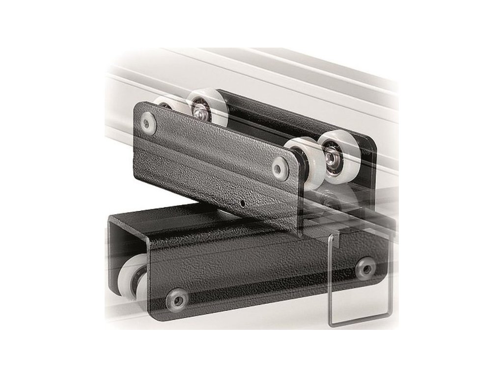 Wózek jest wyposażony w hamulec tylko na jednym wózku. Zazwyczaj wózek z hamulcem jest montowany na szynie stałej w taki sposób, że jest zabezpieczony na swoim miejscu i umożliwia przesuwanie się szyny ruchomej. Jeśli wózek z hamulcem jest zamontowany na szynie ruchomej, uzyskasz odwrotny efekt, tj. zablokowanie przesuwnej szyny ruchomej, podczas gdy wózek może się swobodnie poruszać po szynie stałej.