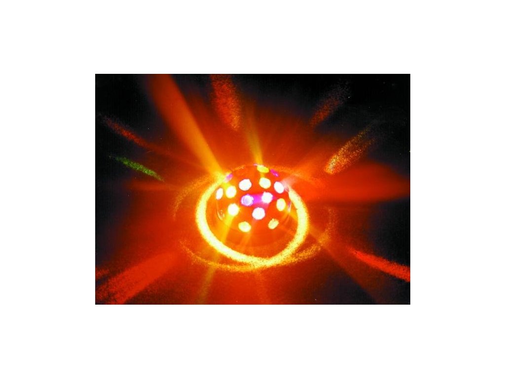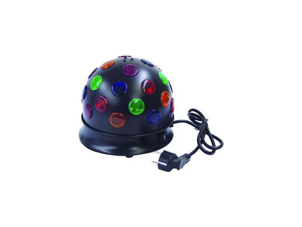 Eurolite Half Ball. 28 pestrobarevných čoček vytváří krásné barevné paprsky pohybující se po celém interiéru. 22ot./min. Nadaje się jako dekoracja barów, klubów nocnych, ale także mieszkań lub pomieszczeń imprezowych. W połączeniu z wytwornicą sztucznej mgły uzyskasz doskonały efekt. Odpowiednie źródło światła: Omnilux 2x 230V/40W E14 żarówek (w zestawie).