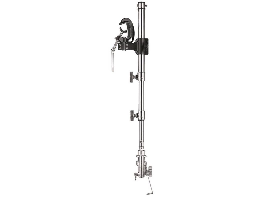 Potrójny statyw teleskopowy Avenger z uniwersalną głowicą to chromowany stalowy statyw ze zintegrowaną uniwersalną głowicą, który może podtrzymywać oświetlenie nad głową.