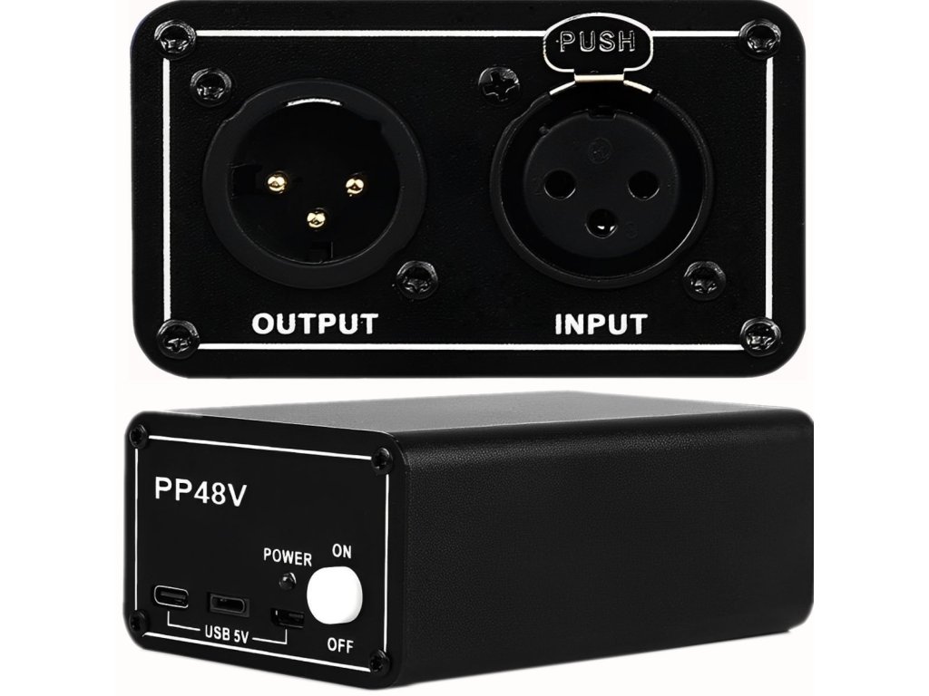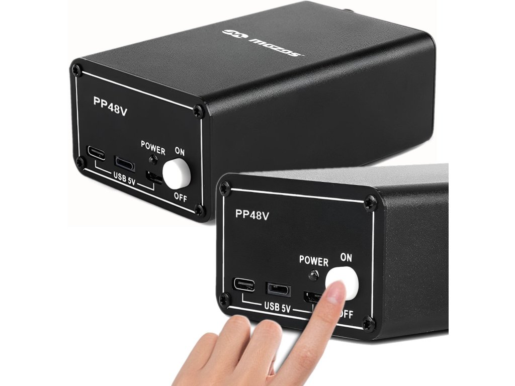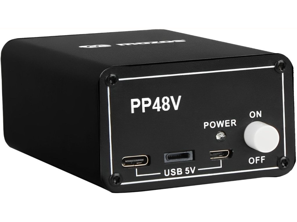 Adapter Mozos PP48V oferuje zasilanie phantom dla mikrofonów pojemnościowych - wystarczy podłączyć mikrofon przez wejście XLR, a wyjściem XLR adaptera wysłać sygnał do karty dźwiękowej, miksera lub konsoli DJ. Wbudowany akumulator litowy ma pojemność 1200mAh i jest w stanie pracować do 7 godzin (ładowanie akumulatora trwa około 3 godzin). Obudowa adaptera wykonana jest ze stopu aluminium.