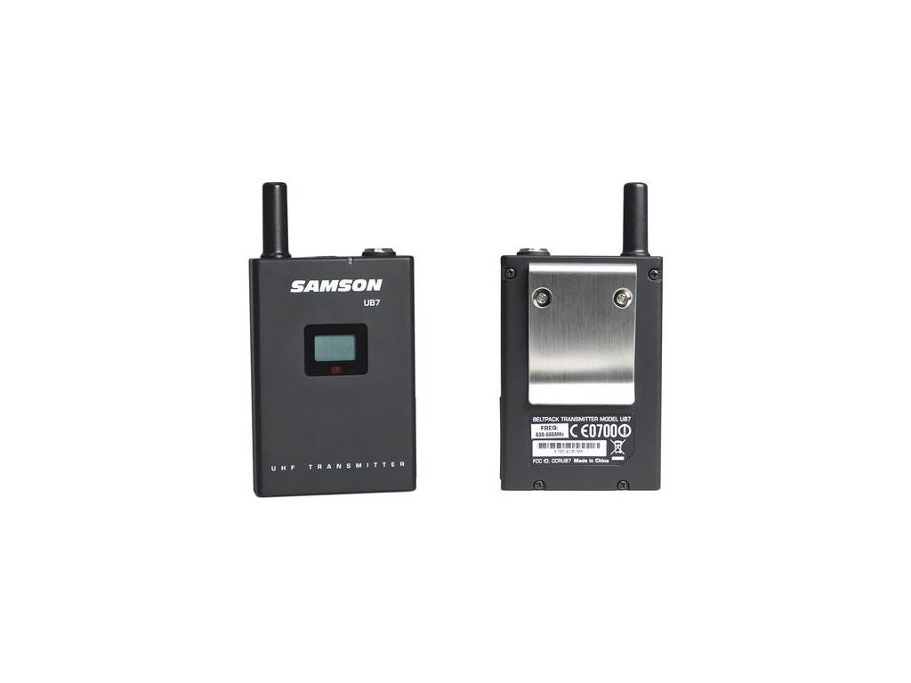 Parametry UB7: miniaturowy pojemnościowy mikrofon krawatowy LM10, zamykane złącze, wyświetlacz LCD ze wskazaniem pojemności baterii i wybranego kanału, 15 godzin pracy na dwóch bateriach AA, zasięg 75m.