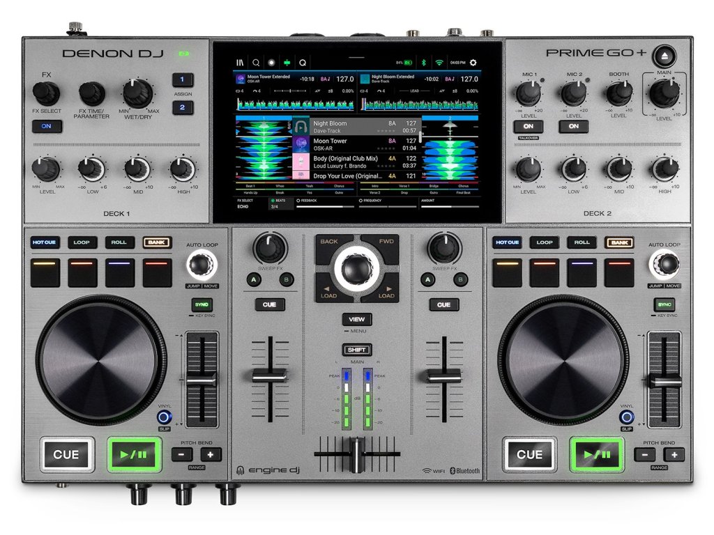 Denon DJ PRIME GO+ to wysokowydajna, samodzielna konsola DJ-ska, która potrafi streamować muzykę przez Wi-Fi w jednym ultraprzenośnym korpusie zasilanym bateryjnie.