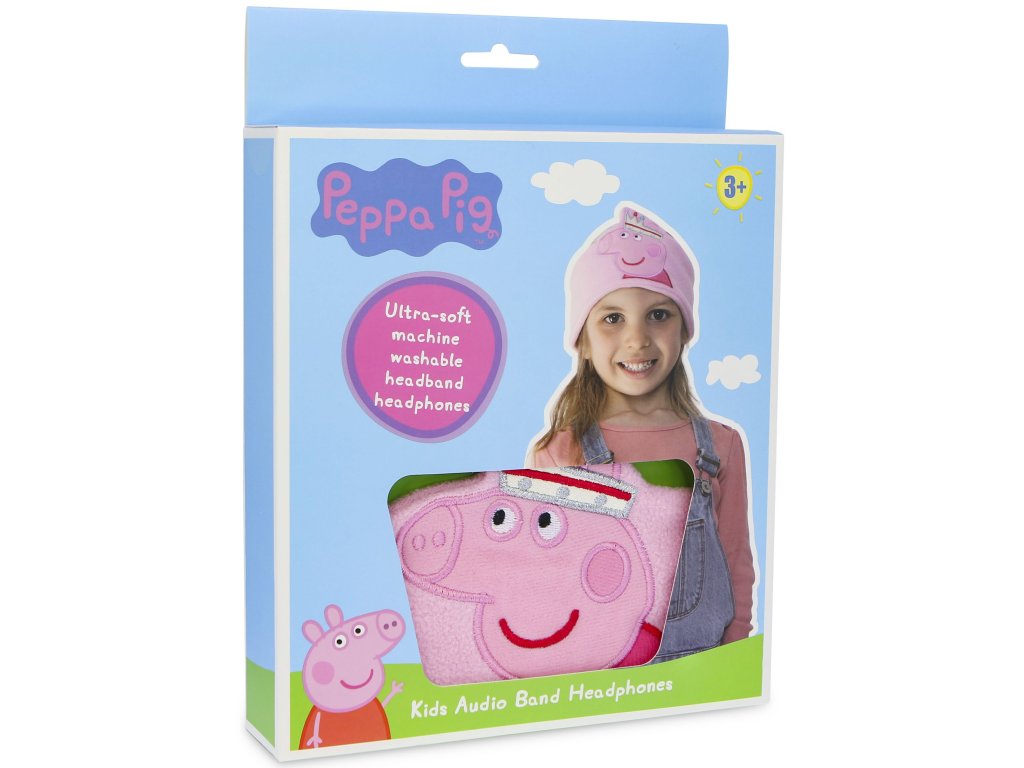 Dziecięca opaska na głowę ze słuchawkami z motywem Princess Peppa. Uroczy design opaski na głowę ze słuchawkami firmy OTL jasno pokazuje, że nie jest ona przeznaczona dla każdego. Dzięki wesołym kolorom i ładnemu nadrukowi wywoła uśmiech od ucha do ucha przede wszystkim u dziecięcych słuchaczy. Wykonanie muzycznej opaski na głowę jest naprawdę leciutkie, a całkowita waga wynosi zaledwie 50 g. Podczas noszenia opaska jest bardzo przyjemna dzięki regulowanemu rozmiarowi za pomocą rzepu oraz dzięki uszyciu z miękkiego materiału polarowego. Można ją łatwo podłączyć do źródła dźwięku za pomocą kabla audio o długości 120 cm ze złączem jack 3,5 mm. Uszy słuchaczy zostaną zaopatrzone w czysty dźwięk, ponieważ słuchawki są wyposażone w wydajne przetworniki 20 mm. Ultra płaskie głośniki można odłączyć od opaski muzycznej, dlatego w razie potrzeby można je oddzielić, a opaskę wyprać w pralce. Opaska ze słuchawkami jest przeznaczona dla dzieci w wieku 3 lat i więcej.