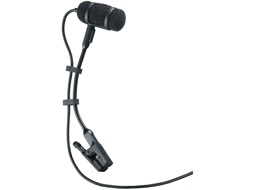 Kardioidalny mikrofon pojemnościowy do instrumentów z klipsem do instrumentu i kablem o długości 1,4 m zakończonym 4-pinowym złączem zabezpieczającym do użytku z systemami bezprzewodowymi Audio-Technica UniPak.