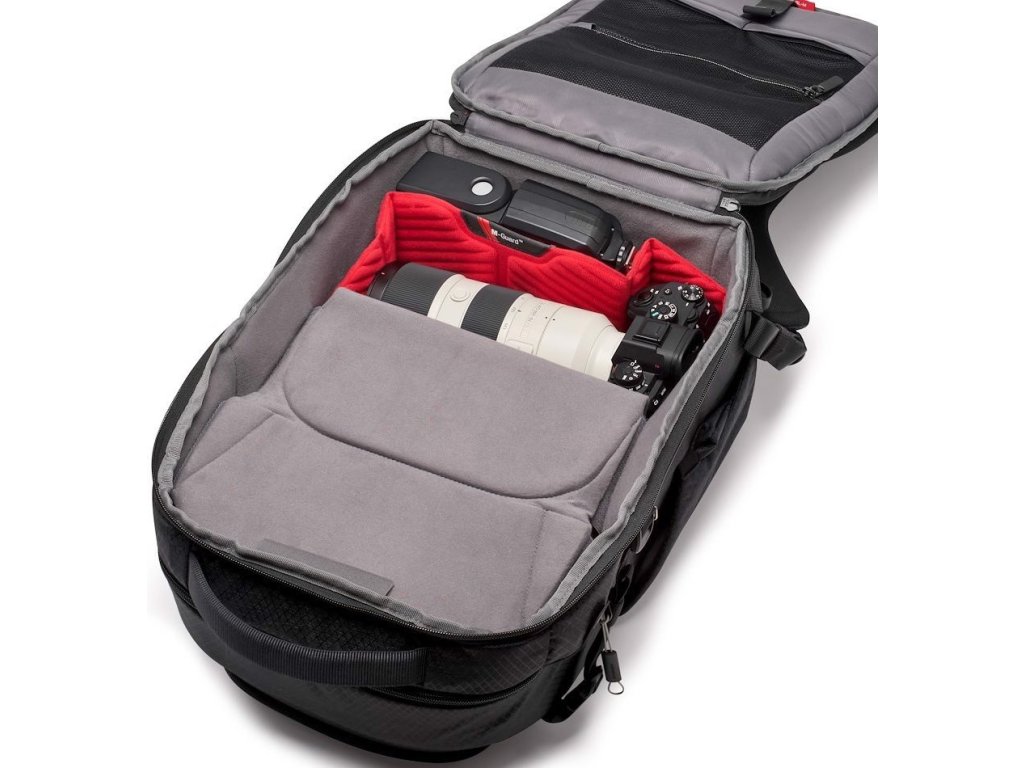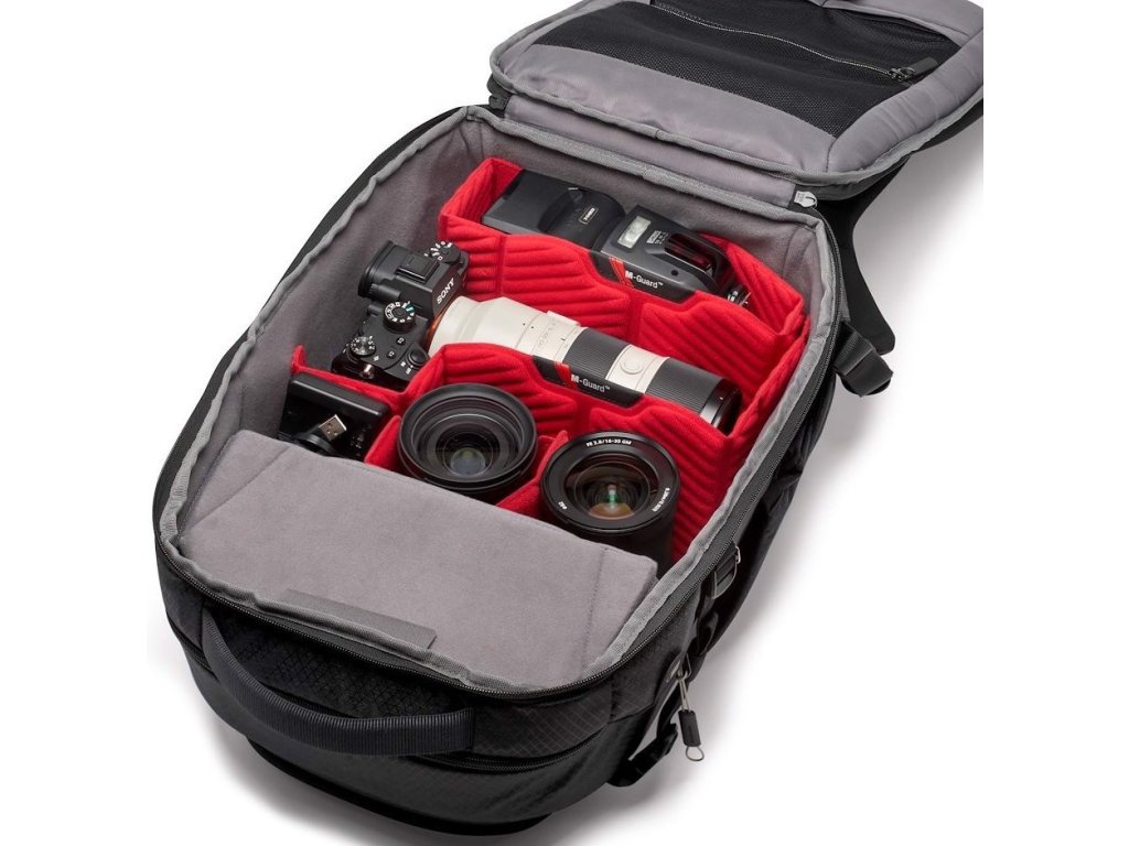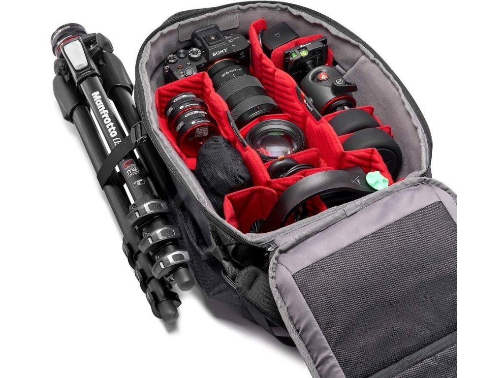 Manfrotto PRO Light Backloader Camera Backpack M to profesjonalny plecak na aparat fotograficzny specjalnie zaprojektowany, aby zapewnić niezrównaną ochronę sprzętu. Odpowiedni dla każdego profesjonalnego fotografa lub filmowca. Plecaki PRO Light wprowadzają całkowicie nowy system ochrony M-Guard, który został specjalnie zaprojektowany i przetestowany laboratoryjnie, aby zagwarantować najwyższy poziom ochrony i odporności na uderzenia, szczególnie we wewnętrznych obszarach, gdzie ochrona jest najważniejsza. Przegrody M-Guard są wykonane z pianki EVA o wysokiej gęstości, która zapewnia wyjątkowe tłumienie wstrząsów przy zachowaniu super cienkiego profilu. SAS-TEC, wiskoelastyczna pianka z pamięcią kształtu i wielofunkcyjna odporność, dodatkowo dodaje na spodzie plecaka wzmocnienie strukturalne, które zapewnia dodatkowe właściwości amortyzujące. Aby zapewnić jeszcze lepsze, bezproblemowe wrażenia, można użyć kłódki zatwierdzonej przez TSA, aby zabezpieczyć stalowy drut do zamknięcia głównej komory. Pro Light Backloader jest wyposażony w bezpieczny tylny dostęp do w pełni wyściełanej komory na aparat z możliwością dostosowania wnętrza. Dla bezproblemowego fotografowania plecak jest wyposażony w wewnętrzną przestrzeń na 2-3 aparaty DSLR lub bezlusterkowce z kilkoma obiektywami. Istnieje również możliwość podziału przestrzeni wewnętrznej na sprzęt i oddzielnie rzeczy osobiste. Przegrody są regulowane zgodnie z wymaganiami. Górny dostęp służy jako alternatywa do sięgnięcia po najczęściej używany aparat lub obiektyw. Z przodu znajduje się wieloczęściowa przegroda na drobne akcesoria i rzeczy osobiste oraz przestrzeń na notebook o wielkości do 15 cali. Backloader jest wyposażony w dwustronne mocowanie do statywów podróżnych, regulowany pasek piersiowy dla lepszego przenoszenia oraz osłonę przeciwsłoneczną i przeciwdeszczową DuoFace, która odpycha wilgoć i odbija światło słoneczne, dzięki czemu sprzęt pozostaje suchy i chłodny przez cały dzień. Plecak wykonany jest z wodoodpornej nylonowo-poliestrowej tkaniny RipStop ze wzmacniającymi nićmi, aby osiągnąć równowagę niskiej wagi, unikalnego wyglądu i wydajności przy dużej pojemności. Dzięki osprzętowi Duraflex, zamkom błyskawicznym YKK, wzmocnieniom, ozdobom i ściągaczom plecak jest niezwykle lekki i wystarczająco mocny, aby wytrzymać nawet najbardziej intensywne użytkowanie i zapewnić długotrwałą ochronę dużej ilości sprzętu.