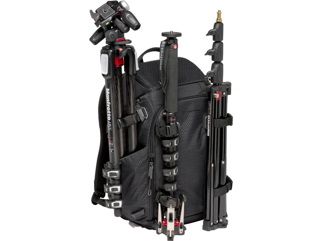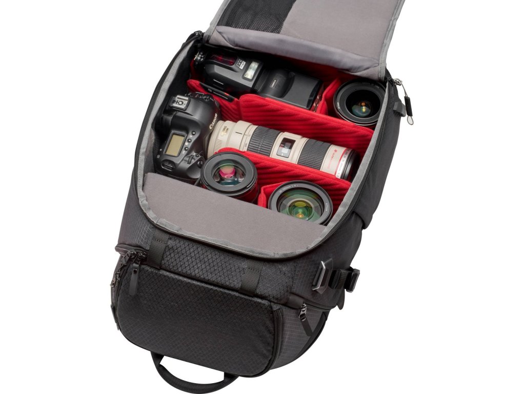 Manfrotto PRO Light Multiloader to profesjonalny plecak na aparat fotograficzny, który został specjalnie zaprojektowany, aby zapewnić niezrównaną ochronę sprzętu, która odpowiada preferencjom i wymaganiom każdego profesjonalnego fotografa lub filmowca. Dla profesjonalnych fotografów i filmowców torba na sprzęt, w której przenoszą i chronią swoje aparaty, jest niezwykle ważna. Plecaki PRO Light wprowadzają całkowicie nowy system ochrony M-Guard, który został specjalnie zaprojektowany i przetestowany laboratoryjnie, aby zagwarantować najwyższy poziom ochrony i odporności na uderzenia, szczególnie we wewnętrznych obszarach, gdzie ochrona jest najważniejsza. Przegrody M-Guard są wykonane z pianki EVA o wysokiej gęstości, która zapewnia wyjątkowe tłumienie wstrząsów przy zachowaniu super cienkiego profilu. SAS-TEC, wiskoelastyczna pianka z pamięcią kształtu i wielofunkcyjna odporność, dodatkowo dodaje na spodzie plecaka wzmocnienie strukturalne, które zapewnia dodatkowe właściwości amortyzujące. Aby zapewnić jeszcze lepsze, bezproblemowe wrażenia, można użyć kłódki zatwierdzonej przez TSA, aby zabezpieczyć stalowy drut do zamknięcia głównej komory. PRO Light Multiloader oferuje cztery możliwości dostępu dla maksymalnej elastyczności. Dostęp z przodu umożliwia pełne otwarcie głównej komory, co zapewnia pełną kontrolę nad sprzętem i jego uporządkowanie. Dwa boczne dostępy umożliwiają szybki dostęp do strategicznie rozmieszczonych aparatów lub obiektywów w celu szybkiej wymiany. Górny dostęp umożliwia szybkie chwytanie najczęściej używanego sprzętu. Plecak Multiloader oferuje w pełni modułowe rozwiązanie do noszenia. Dzięki zastosowaniu różnych kombinacji uprzęży i pasków można go nosić jako plecak dla maksymalnego komfortu, torbę na ramię lub sling. Boczne mocowanie umożliwia noszenie statywu do serii 055. Przednie mocowanie można podzielić do przenoszenia monopodu lub mniejszego statywu oświetleniowego. Plecak jest wyposażony w 15-calową przegrodę na laptopa, regulowaną wysokość tułowia, podwójne paski piersiowe i wyściełany pas biodrowy do rozłożenia obciążenia. Ten plecak został zaprojektowany tak, aby chronić profesjonalny sprzęt, a jednocześnie zapewniać optymalny komfort nawet podczas długiego noszenia. System pasków nie tylko równomiernie rozkłada ciężar z ramion na talię i biodra, ale także maksymalizuje oddychalność dzięki profilowanemu panelowi EVA. Plecak wykonany jest z wodoodpornej nylonowo-poliestrowej tkaniny RipStop ze wzmacniającymi nićmi, aby osiągnąć równowagę niskiej wagi, unikalnego wyglądu i wydajności przy dużej pojemności. Dzięki osprzętowi Duraflex, zamkom błyskawicznym YKK, wzmocnieniom, ozdobom i ściągaczom plecak jest niezwykle lekki i wystarczająco mocny, aby wytrzymać nawet najbardziej intensywne użytkowanie i zapewnić długotrwałą ochronę dużej ilości sprzętu.