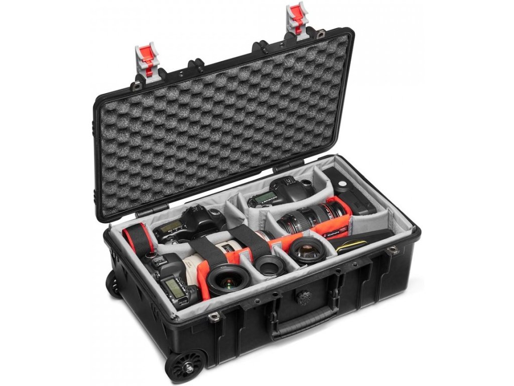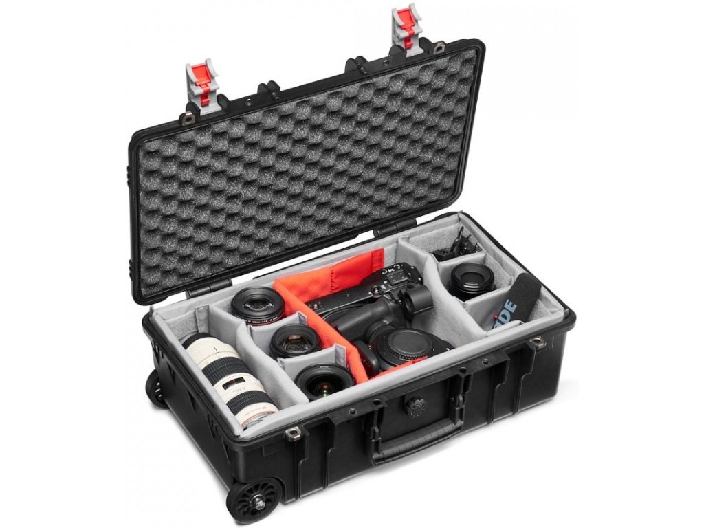 Nowa walizka fotograficzna Pro Light Reloader Tough L-55 do lustrzanek cyfrowych i wysokiej klasy CSC jest przeznaczona dla profesjonalnych fotografów i kamerzystów. Została wyprodukowana we Włoszech zgodnie z najwyższymi standardami z wysokiej jakości materiałów w oryginalnym stylu Manfrotto. Zatwierdzone testy IP67: brak wnikania pyłu i wytrzymuje nawet tymczasowe zanurzenie w wodzie do 30 minut. Wyprodukowano i zaprojektowano dla fotografów w podróży, którzy nie chcą iść na kompromis między bezpieczeństwem a przenośnością. Ten element spełnia wymiary bagażu podręcznego zgodne z większością linii lotniczych * i jest wyposażony w 2-stopniowy system chowania. Nowy Pro Light Reloader Tough H-55 ma wewnętrzną wyjmowaną jednostkę organizacyjną aparatu, którą można dostosować za pomocą regulowanych przełączników Manfrotto CPS. Z łatwością pomieści aparat DSLR z podłączonym obiektywem 70/200 mm, drugim korpusem aparatu i 4-5 dodatkowymi obiektywami w zależności od rozmiaru. Przed odlotem zawsze sprawdź aktualne wymagania w swojej linii lotniczej. Pamiętaj, że przeładowanie walizki spowoduje jej rozciągnięcie.