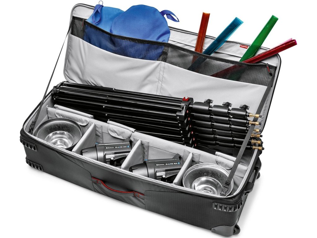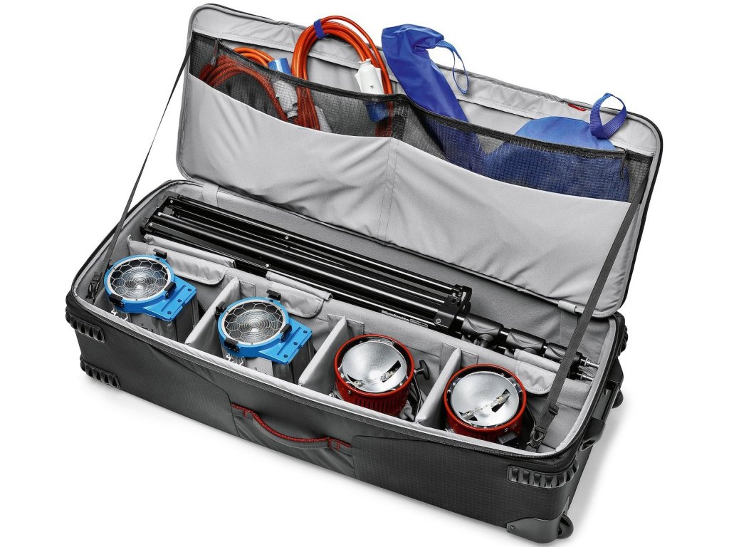 Bardzo duży organizer, który jest doskonałym rozwiązaniem do transportu lamp i wszystkich akcesoriów do nich. Jego częścią są przegrody, które amortyzują wstrząsy i utrzymują delikatny sprzęt w bezpiecznym miejscu. Oprócz lamp można w nim przechowywać również rzeczy osobiste. Posiada boczny i górny uchwyt oraz dwa kółka ułatwiające transport. Wykonany jest z lekkich materiałów i chroni sprzęt przed złą pogodą i kurzem.