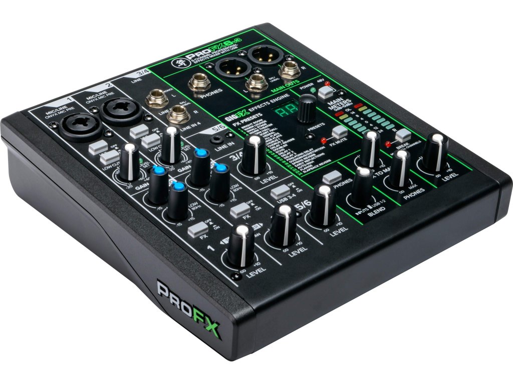 Konkretnie ProFX6v3 to sześciokanałowy mikser z dwoma przedwzmacniaczami Onyx i silnikiem dźwiękowym GigFX. Dźwięk można regulować za pomocą intuicyjnych pokręteł i dwupasmowego korektora, a oprócz dwóch wejść Combo XLR/Jack, konsola posiada również wejście Hi-Z do bezpośredniego podłączenia gitary/basu, stereofoniczne wejście Jack i wejście Line IN do odtwarzacza muzycznego lub urządzenia mobilnego. Ponadto znajduje się tutaj wyjście na monitory, wyjście główne, wyjście słuchawkowe i wejście na przełącznik nożny.