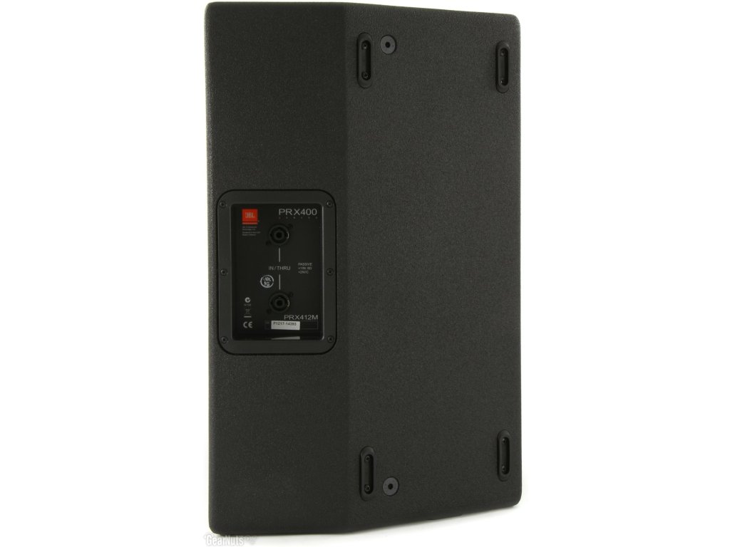 JBL PRX412M to kompaktowy, dwudrożny, pasywny zestaw głośnikowy o mocy 300 W / RMS z 12-calowym wooferem i 1-calowym polimerowym przetwornikiem kompresyjnym HF zaprojektowany jako monitor podłogowy lub satelita w połączeniu np. z subwooferem PRX418S.