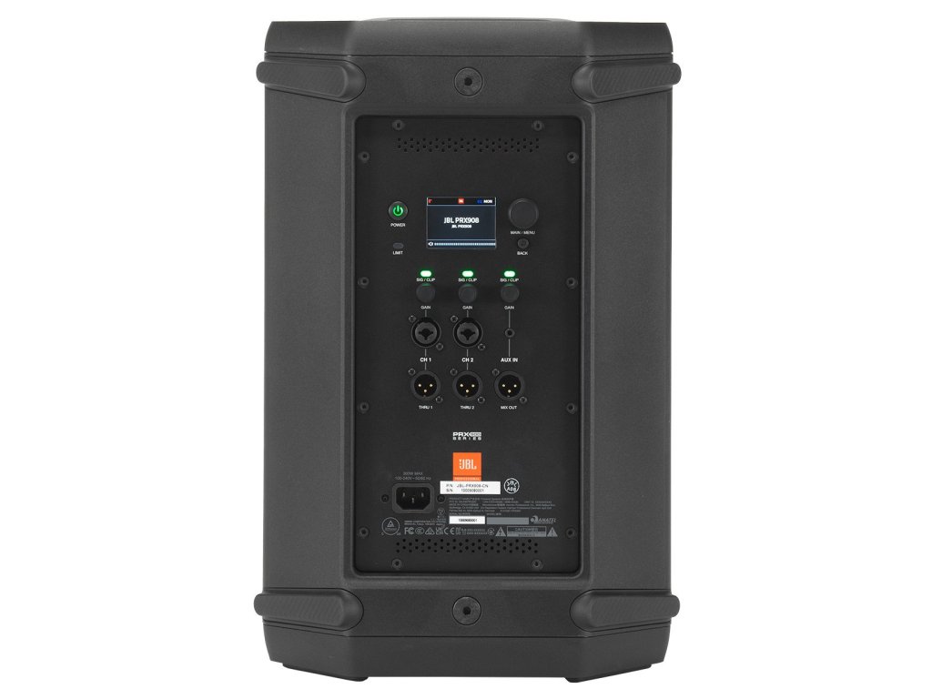 Najwyższej klasy procesor DSP PRX908, dostępny za pośrednictwem zintegrowanego kolorowego wyświetlacza LCD lub aplikacji JBL Pro Connect, zawiera 12-pasmowy korektor parametryczny do strojenia systemu i precyzyjnej kontroli tonów; zintegrowana technologia dbx DriveRack obejmuje automatyczne tłumienie sprzężeń, limiter z możliwością Soundcraft Overeasy, ustawienia i presety opóźnienia głośników.