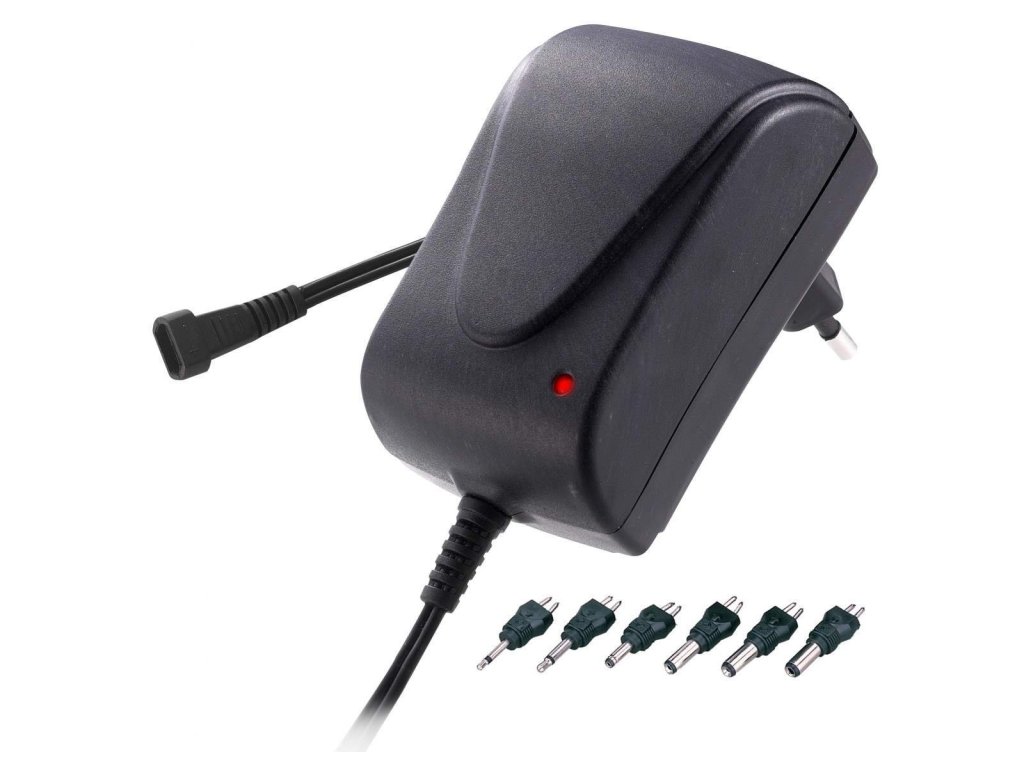 Uniwersalny zasilacz sieciowy z przełącznikiem napięcia wyjściowego i zestawem sześciu nasadek dla różnych złączy. Odpowiedni do instrumentów klawiszowych, syntezatorów, efektów stompbox i innych urządzeń elektrycznych.