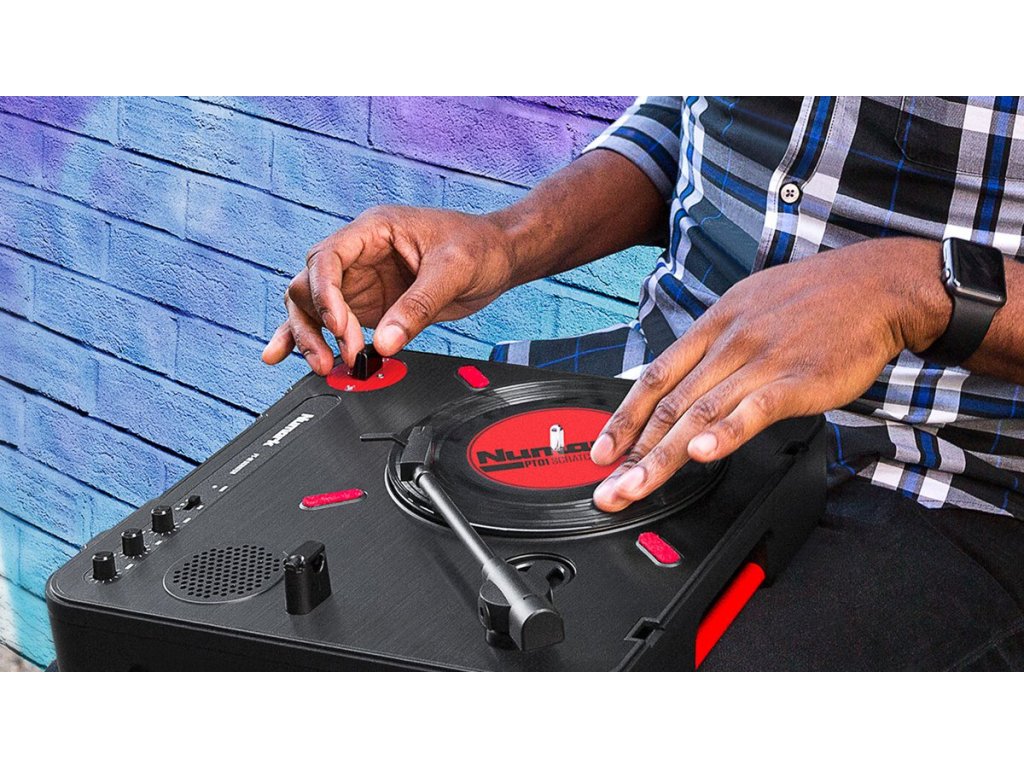 Nadchodzi nowa era scratchingu. Z nową wersją mobilnego gramofonu PT01 Scratch możesz scratchować i cutować winyle gdziekolwiek. Zbudowany z nowym Scratch Switch od Numark, nowy PT01 umożliwia zabranie ulubionego nagrania winylowego i pokazanie, co potrafisz - na zewnątrz i wewnątrz.