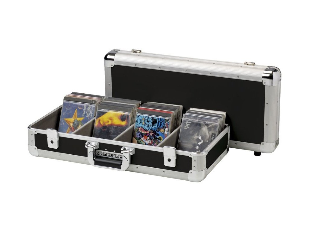 Poręczna walizka na 100 płyt CD firmy Reloop. Walizka jest wyposażona w miękką piankową wyściółkę, która zapobiega zarysowaniom.