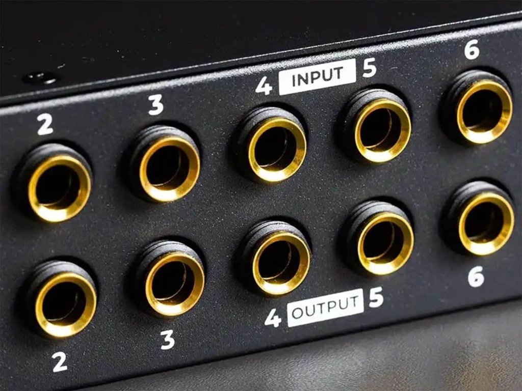- Wyjścia liniowe: 8x symetryczne TRS 6,3 mm (duży jack)
