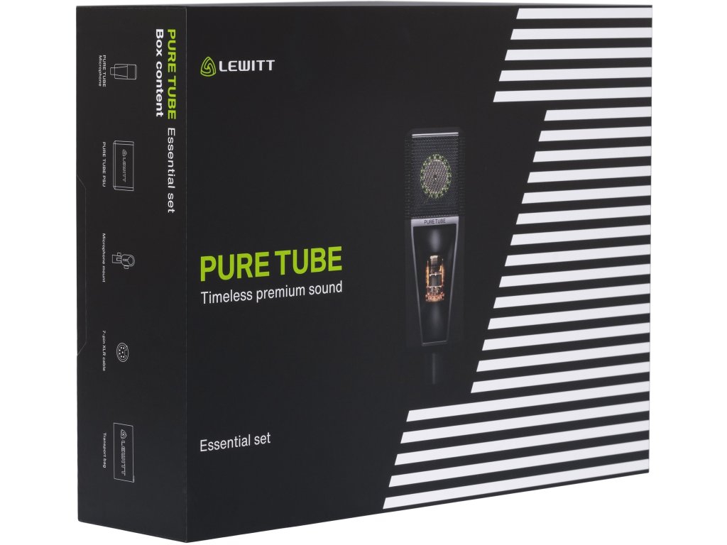 Lewitt PURE TUBE to profesjonalny mikrofon studyjny z dźwiękiem premium, zoptymalizowanym do nagrywania śpiewu/wokalu. Jest to mikrofon pojemnościowy z pozłacaną, calową kapsułą, kardioidalną charakterystyką kierunkową, ręcznie wybieraną lampą 12AU7/ECC82, obwodem bez kondensatorów i półprzewodników oraz ultra niskim szumem 7 dB (A). PURE TUBE ESSENTIAL SET zawiera mikrofon pojemnościowy, zasilacz, uchwyt mikrofonowy, 7-pinowy kabel XLR i futerał transportowy.