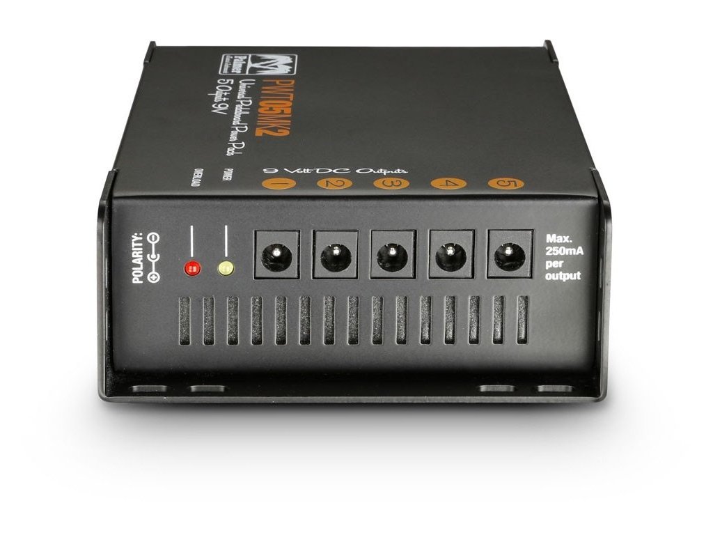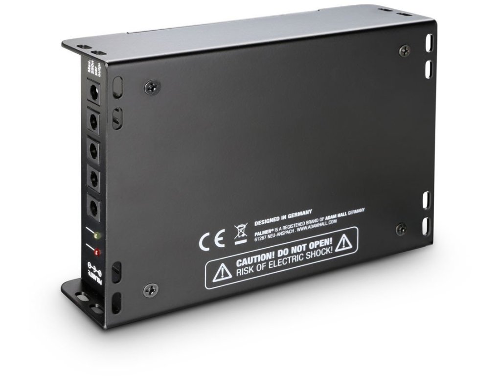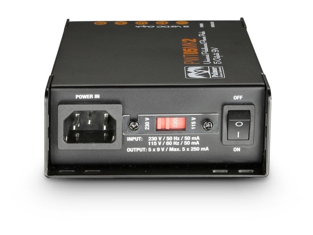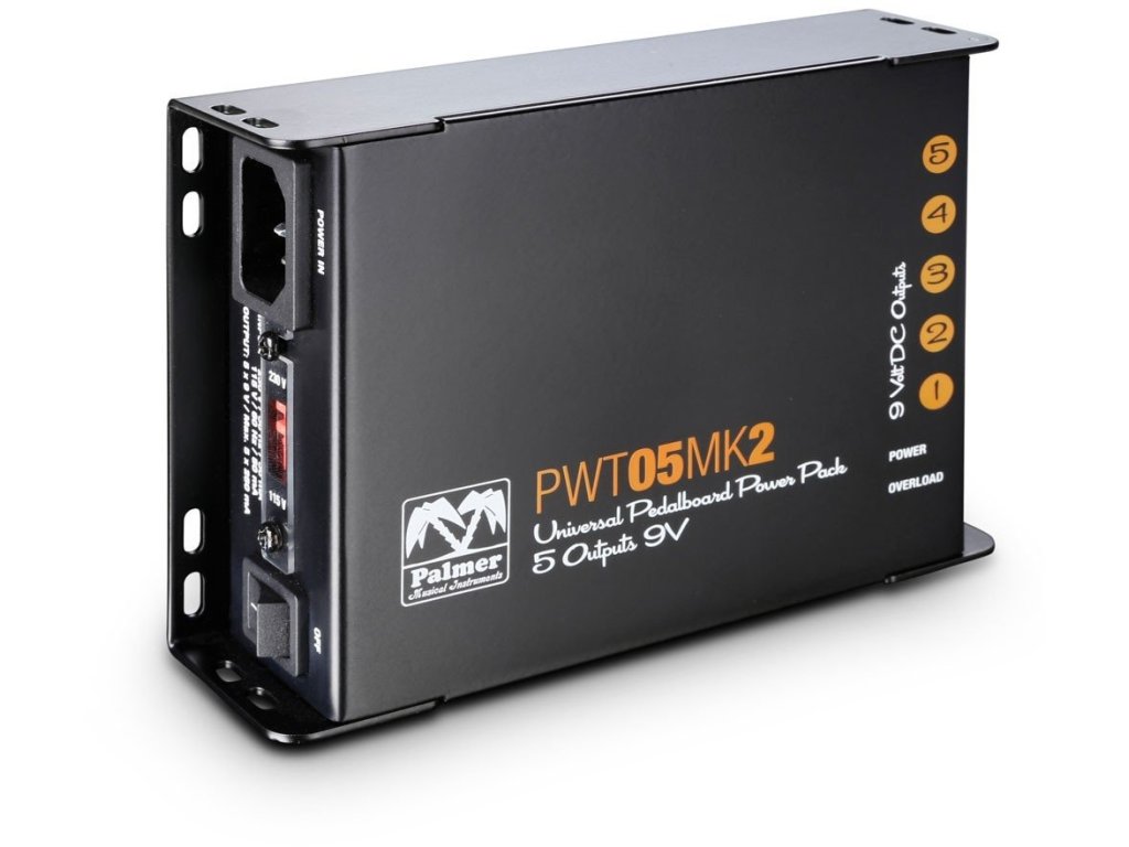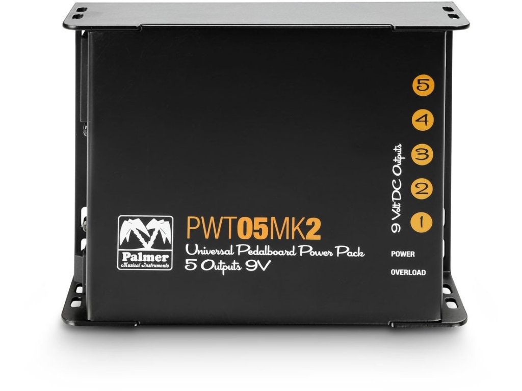 Kompaktowy zasilacz PWT 05 MKII firmy Palmer o stałym natężeniu 250 mA na wyjście jest odpowiedni praktycznie do wszystkich pedalboardów. Aby zapewnić czyste zasilanie pedałów efektowych, pięć pustych gniazd z ujemnym stykiem wewnętrznym jest od siebie odizolowanych, dzięki czemu nie powstają pętle mas i związane z nimi przydźwięki.
