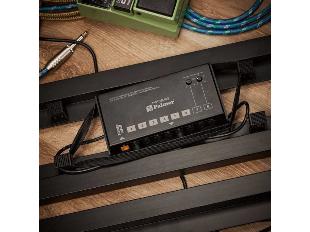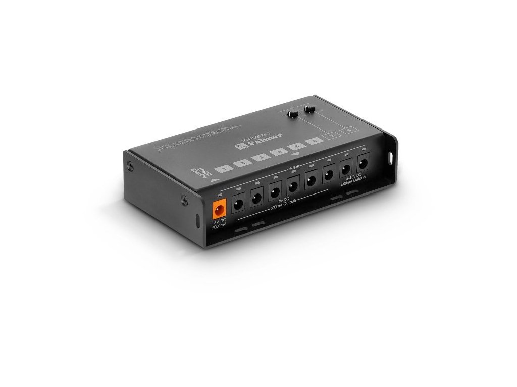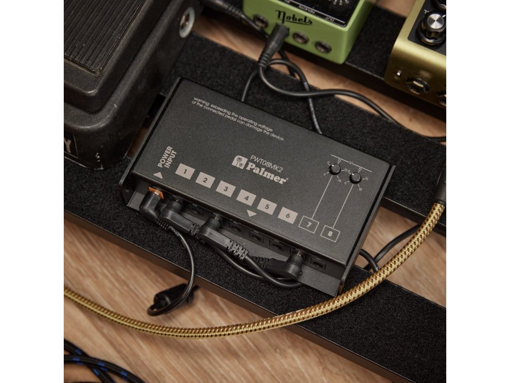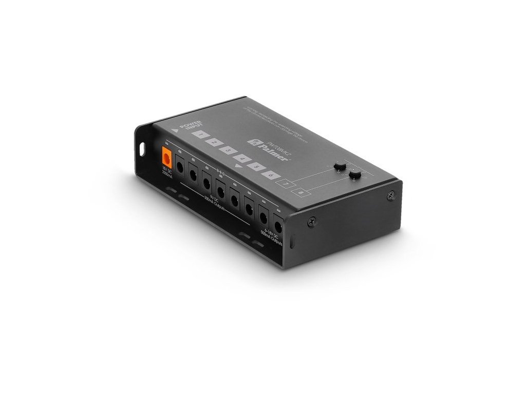Żaden niepożądany szum, wystarczająca moc dla pedałów wymagających zasilania i smukła konstrukcja. Zasilacz PWT 08 MK2 wyróżnia się smukłą konstrukcją, która z łatwością mieści się pod niemal wszystkimi płytami pedałowymi. Całkowita pojemność 2000 mA jest podzielona na osiem oddzielnie izolowanych wyjść 9 V DC. Dwa z wyjść są regulowane w zakresie od 6 do 18 V, aby symulować spadek napięcia starych baterii lub zasilać pedały efektów o wyższych wymaganiach napięciowych. Te dwa oddzielnie izolowane wyjścia zapewniają dodatkowo po 500 mA każde, dzięki czemu idealnie nadają się do cyfrowych pedałów efektów o wysokich wymaganiach prądowych. Kolejne sześć indywidualnie izolowanych wyjść zapewnia po 300 mA każde. Zasilacz PWT 08 MK2 jest regulowany w celu uzyskania stabilnego napięcia zasilania i jest chroniony przed zwarciem i przepięciem. Zasilacz PWT 08 MK2 do pedalboardów jest również wyposażony w diodę LED zasilania na gnieździe wejściowym i dwukolorową diodę LED na wszystkich wyjściach do wskazywania stanu wyjścia. Dostarczany jest z odpowiednim zasilaczem US/UK/EU i kompletnym zestawem kabli DC. Zasilacz PWT 08 MK2 jest idealnym rozwiązaniem dla pedalboardów o niskim poziomie szumów, które zawierają pedały efektów wymagające zasilania.