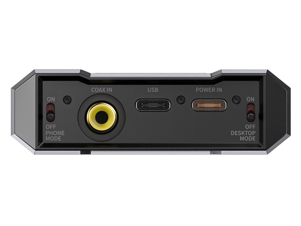 Nie tylko odpowiednia waga i wymiary, ale również interfejs sprawiają, że Q15 jest naprawdę uniwersalnym urządzeniem. Na górze znajduje się pokrętło głośności, które jednocześnie pełni funkcję przycisku, wyjście słuchawkowe/liniowe 3,5 mm i symetryczne wyjście słuchawkowe 4,4 mm. Na spodzie znajdują się dwa porty USB-C, jeden do ładowania i jeden jako wejście USB DAC. Znajduje się tu również wejście koaksjalne i dwa przełączniki, którymi można sterować trybami wzmacniacza. Oczywistą cechą jest obsługa Bluetooth 5.0 z kodekami Hi-Fi.