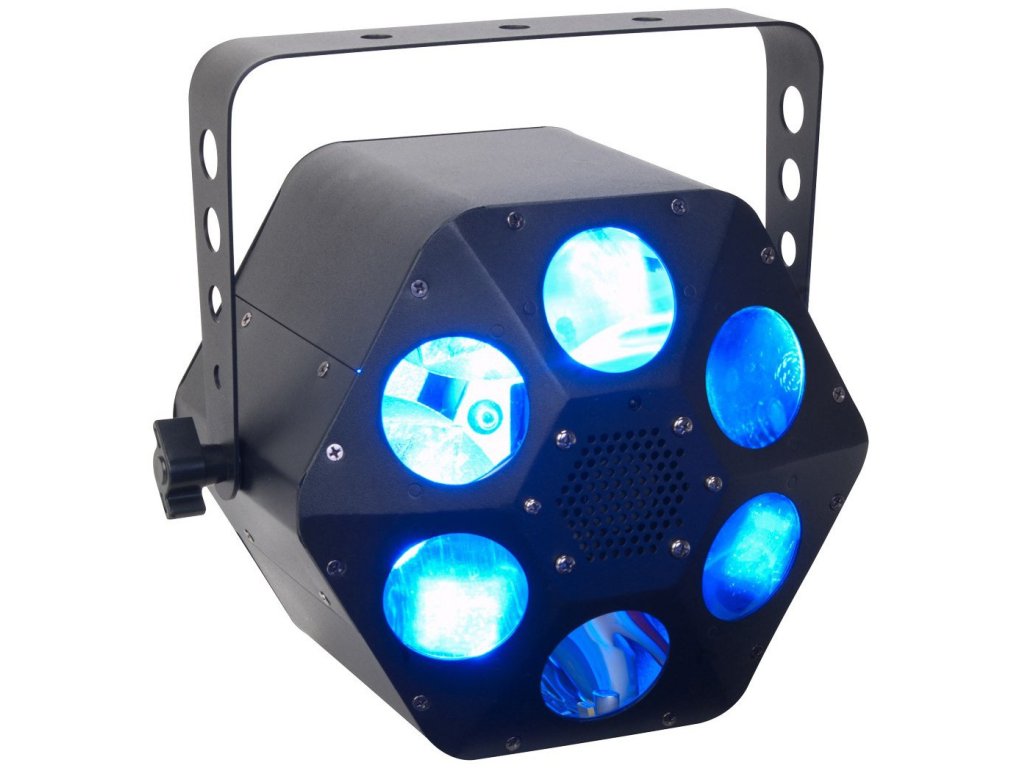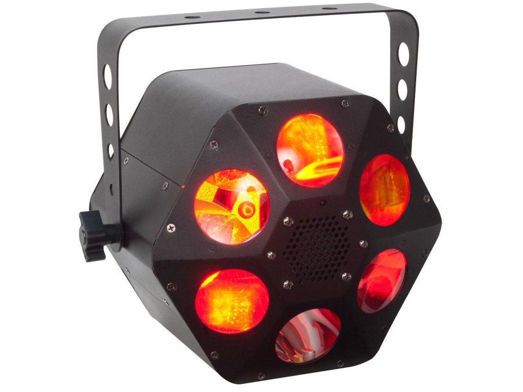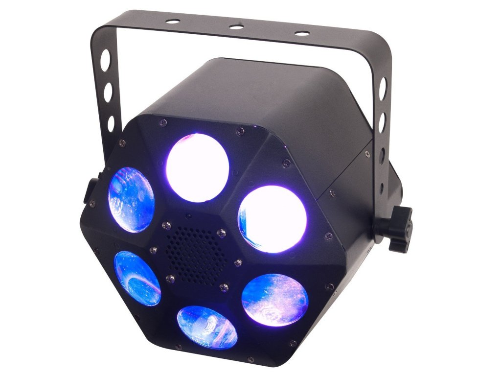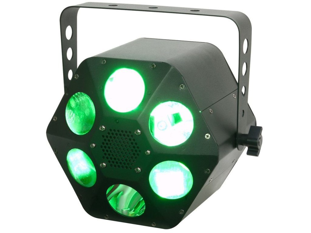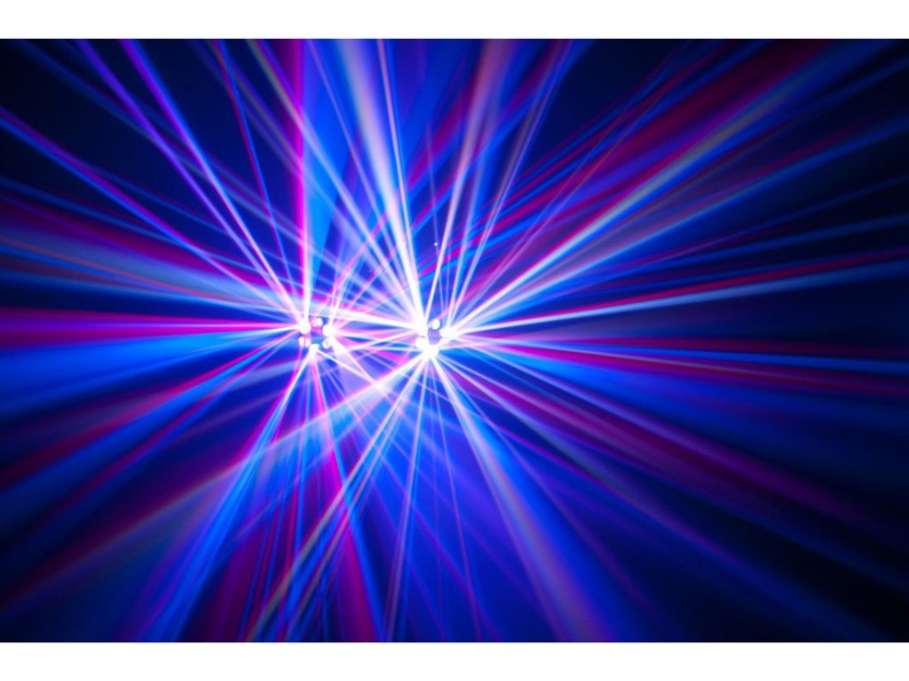 - Wysokowydajny efekt Moonflower z 32W czterokolorową diodą LED 4 w 1 (czerwona, zielona, niebieska, biała) tworzy promienie światła o zmiennym kolorze